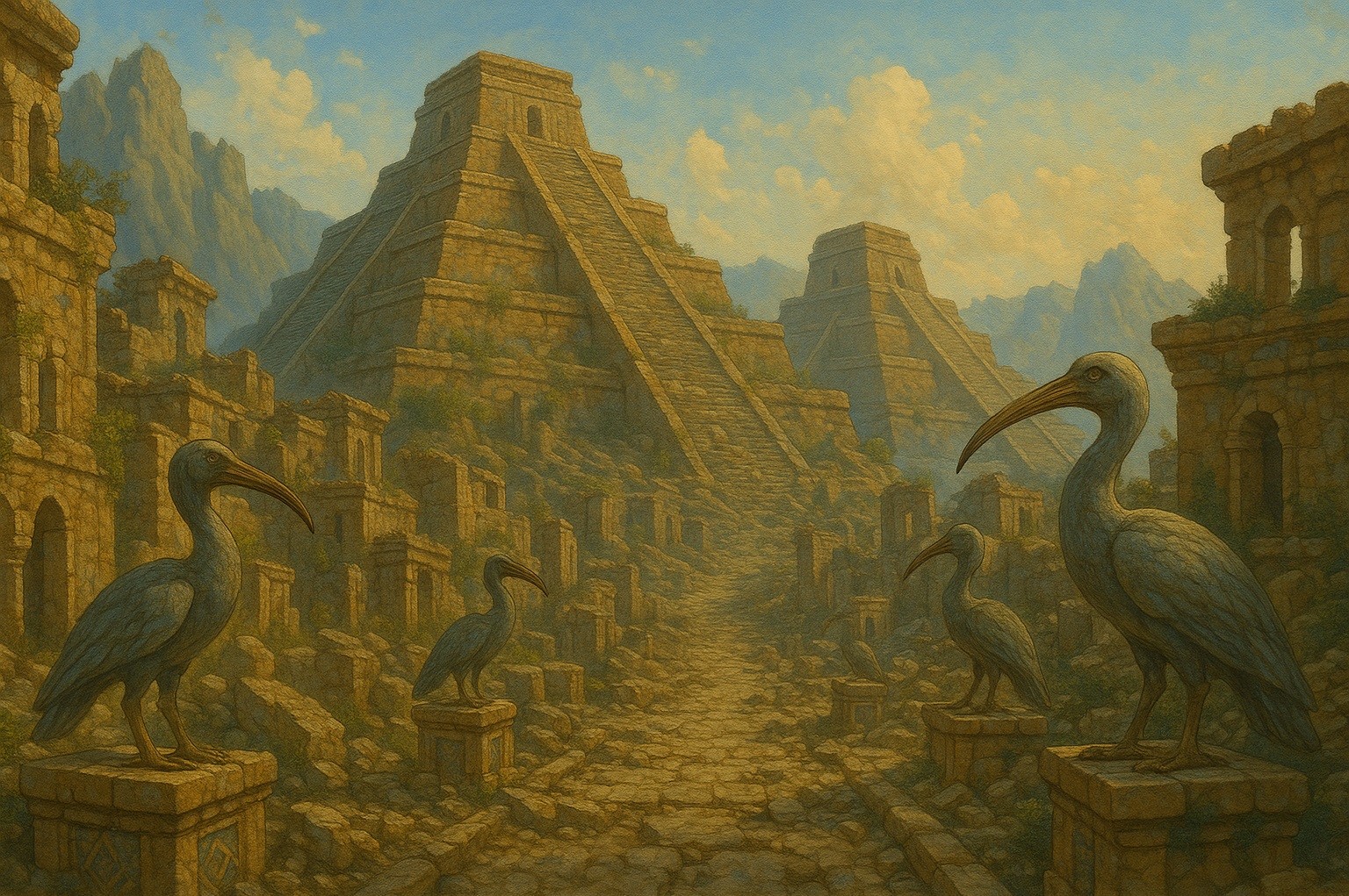 La Cité de l’Envol est une ville en ruine aux dimensions cyclopéennes, perdue dans la Cordillère du Cana. Oubliée par la mémoire des hommes, elle était le centre de l’empire du Roi Ibis.