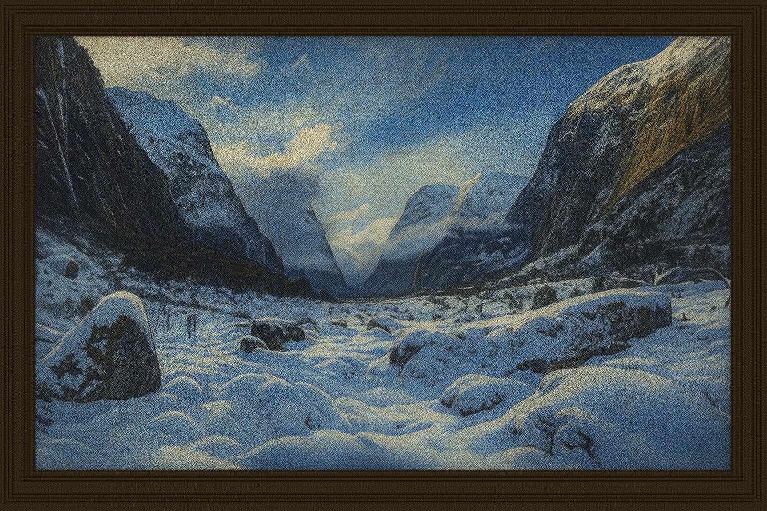 La Route de Yelgan traverse l’étroite vallée de bout en bout. Elle est balisée par quelques murets de pierres sèches. Régulièrement, des caravanes la franchissent dans les deux sens, les beuglements de leurs interminables colonnes de yaks s’entendant loin à la ronde. Vers le milieu du col, on trouve un ancien abri troglodytique, creusé dans une anfractuosité. L’abri est attenant à une caverne plus large, trop froide pour les humains, mais idéale pour quelques yaks. L’abri est maintenu sommairement par les clans montagnards timariens, qui y laissent parfois des couvertures grossières ou des réserves de fromages secs et d’herbes médicinales. Ces gestes de solidarité sont souvent compensés par une offrande symbolique laissée en retour par les caravaniers : un outil, une pièce de tissu ou un peu de sel. Le contrôle du col est disputé entre plusieurs clans montagnards, et change souvent de mains. Malgré les tensions, tous s’accordent sur le fait que le col doit rester ouvert. Des postes d'observation discrets dans les hauteurs, faits de pierre brute, le surveillent, guettant l’arrivée de caravanes marchandes, d’éclaireurs hostiles ou d’éventuels pillards.Rencontres