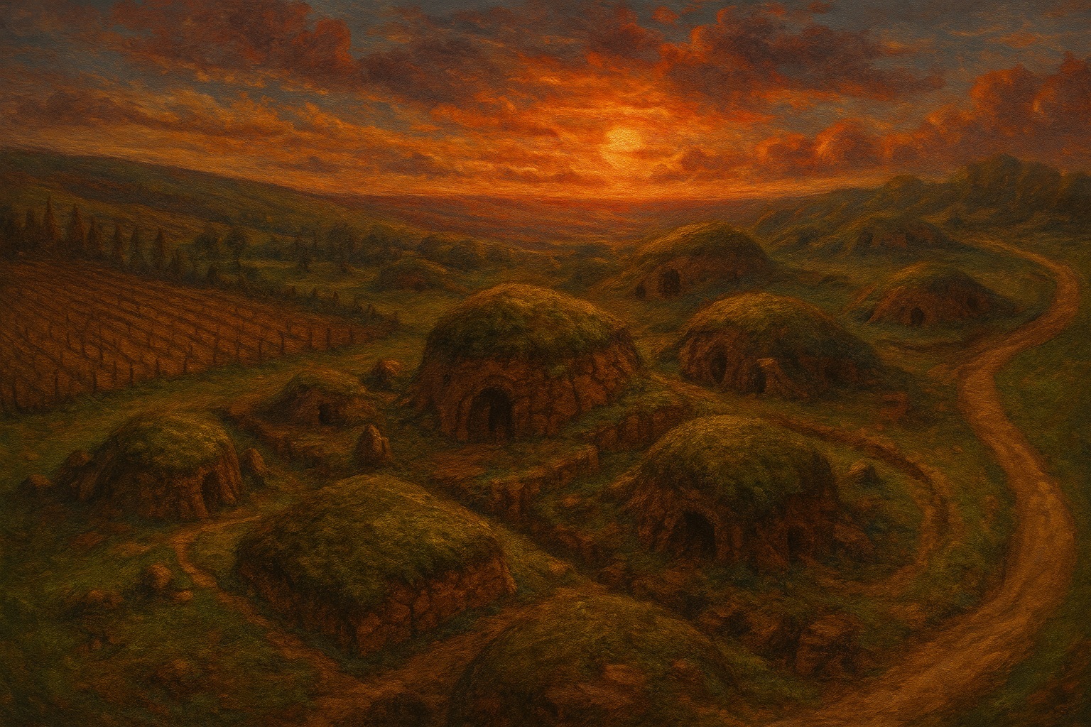 Curiates de jadis. Elle se caractérise par une osmose avec le milieu naturel où sont construits les bâtiments : aménagement des cavités naturelles et des sources, adaptation des parois naturelles etc. Dans les villages, les maisons sont rondes et basses, surmontée de toits de chaume ou de tuiles d'ardoise pour les plus aisées. Dans les villes, les bâtiments s'allongent, montent sur deux ou trois étages et deviennent ovoïdes.