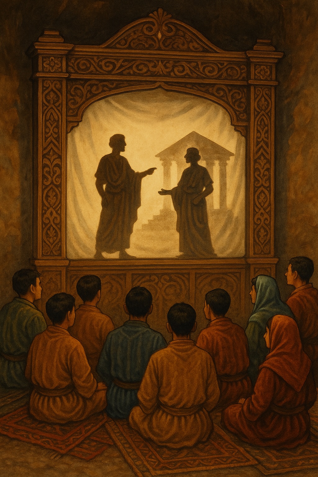 Derrière une toile tendue éclairée par une flamme, des artistes s’emploient avec de nombreux artifices à illustrer par les ombres de grands récits populaires ou enfantins, des drames terribles ou des histoires grivoises. Du plus modeste hameau à la cour d’une grande capitale, tous les Dalmutes ont assisté à au moins une représentation de théâtre d’ombres au cours de leur vie.