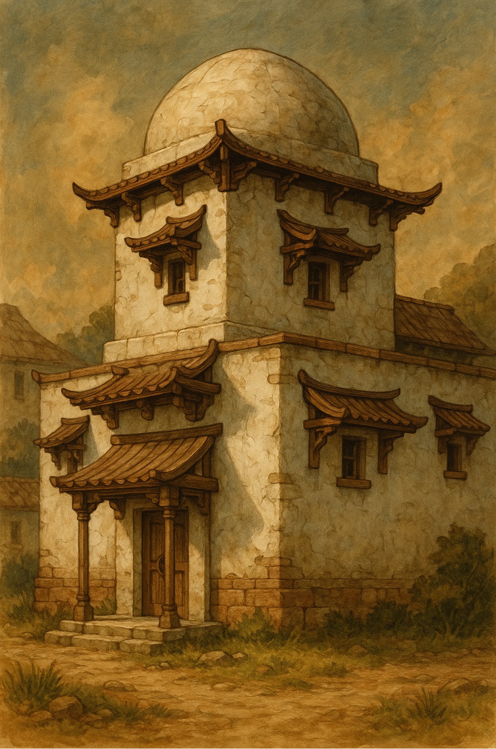 Dilmak est vaguement rectangulaire, avec des grandes avenues en damier pavées de galets et des rues secondaires en terre. En guise d’égouts, des canaux et rigoles permettent l’évacuation des eaux usées jusqu’au port. L’architecture dominante est amonéenne, fortement influencée par les Makutaris (nombreux encorbellements en bois et cloisons internes en papier d’amate). Les beaux quartiers se trouvent au nord, là où l’eau du fleuve est la plus propre. Ils sont séparés du reste de la cité par une enceinte interne.Les Trois Regards
