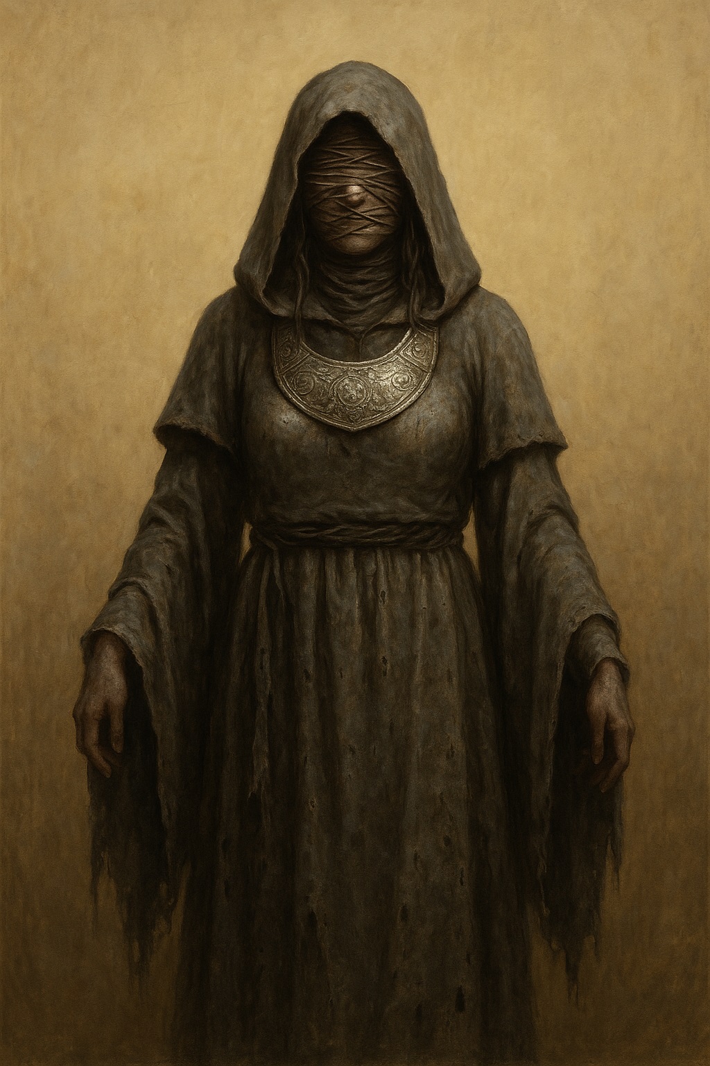 Une druidesse grise en tenue cérémonielle