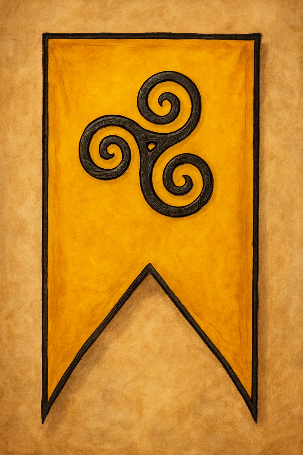 Les druides jaunes utilisent souvent l’image d’un triskèle noir sur fond jaune comme symbole.
