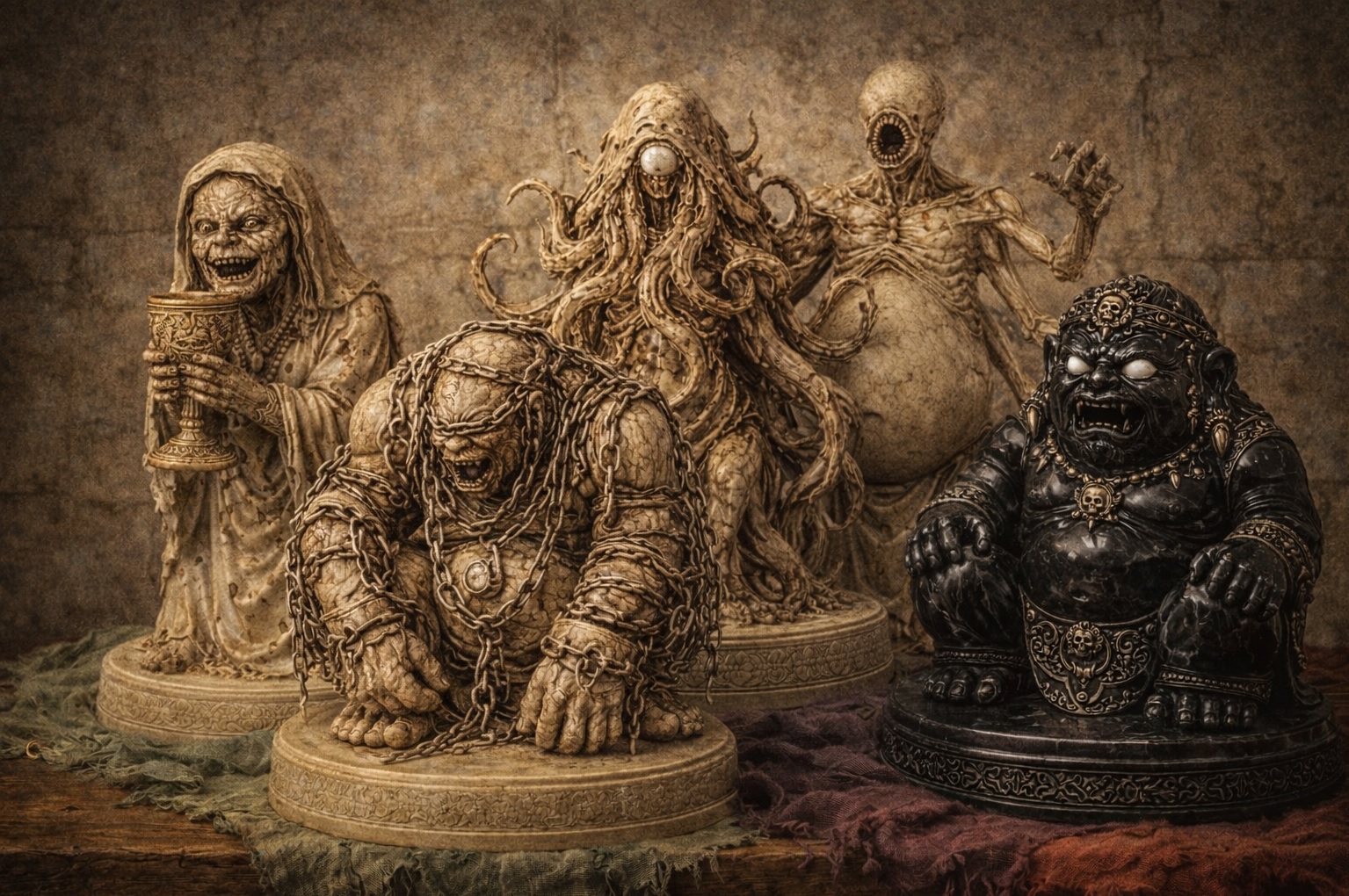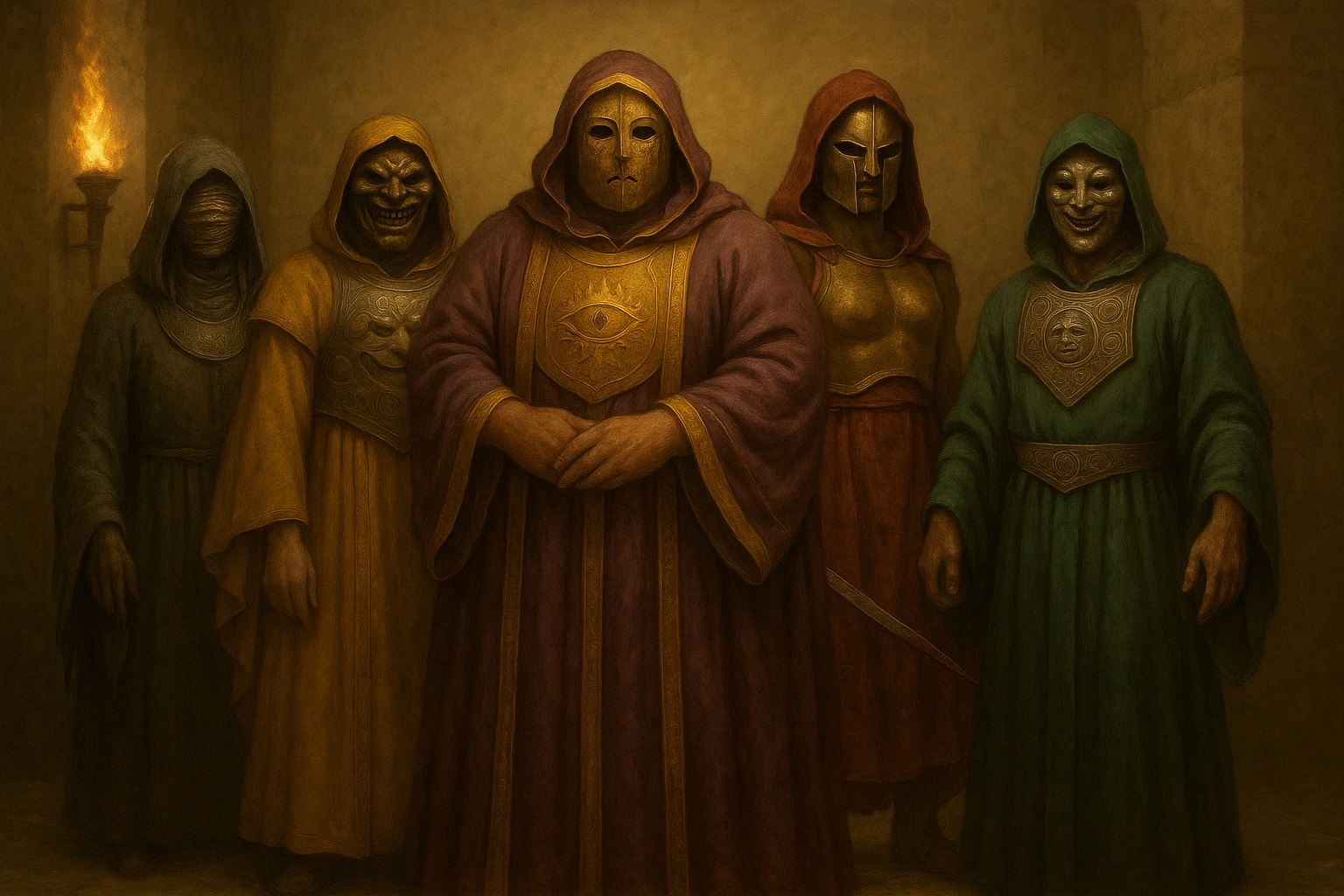 Chaque Roi et Reine démon est parvenu à attirer dans ses filets des adorateurs mortels. Ceux-ci se réunissent en groupes et cabales plus ou moins organisés, reconnaissables à la couleur de leurs robes cérémonielles.- Les adorateurs de Jebezus, le Roi-démon de l’avidité et de la luxure, sont les druides mauves