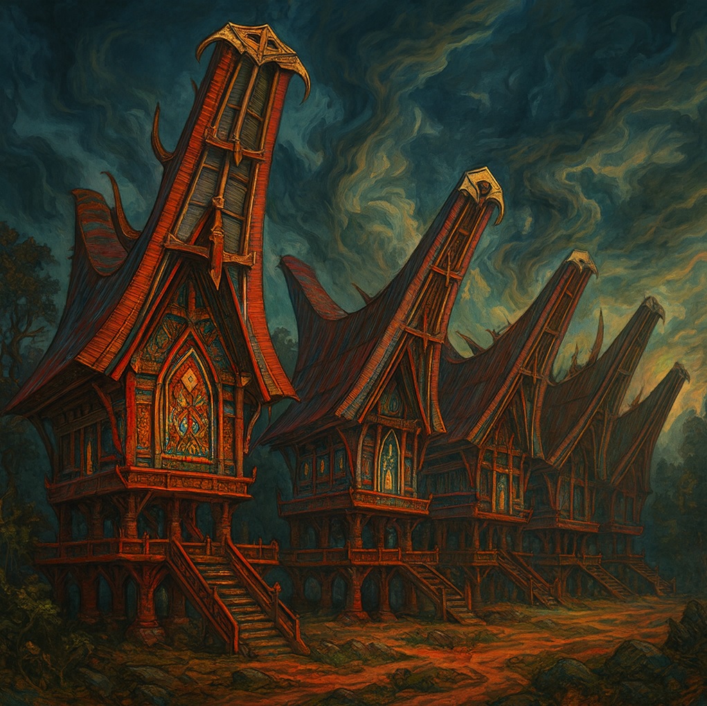 Dans les villes plus importantes, les Gowadiens conservent l’architecture des toits très pointus et des murs peints de motifs aux couleurs vives.