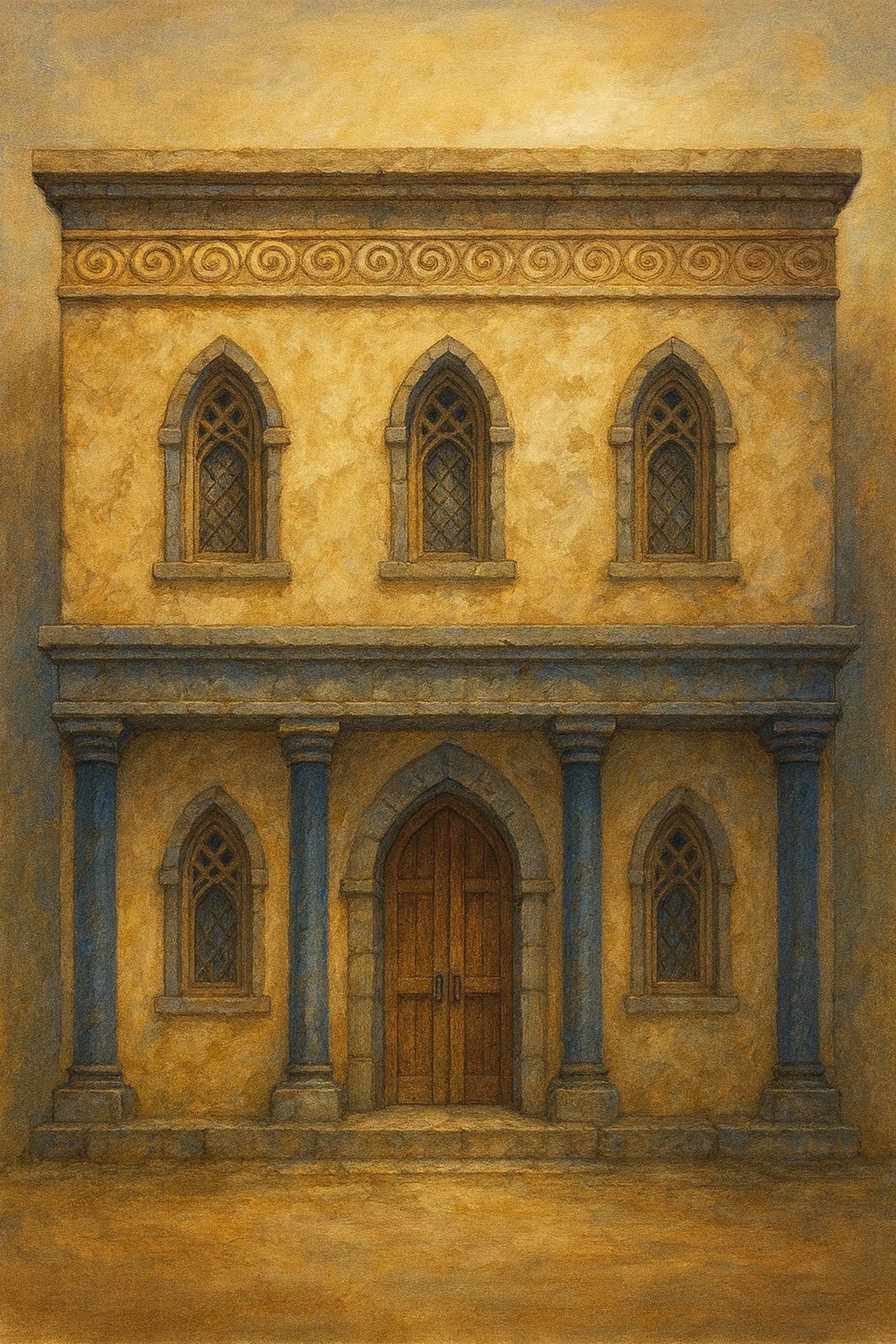 amonéenne. Les fenêtres en ogive, encadrées par des structures en bois ajouré, sont la norme, de même que les portes voûtées avec des arcs brisés.