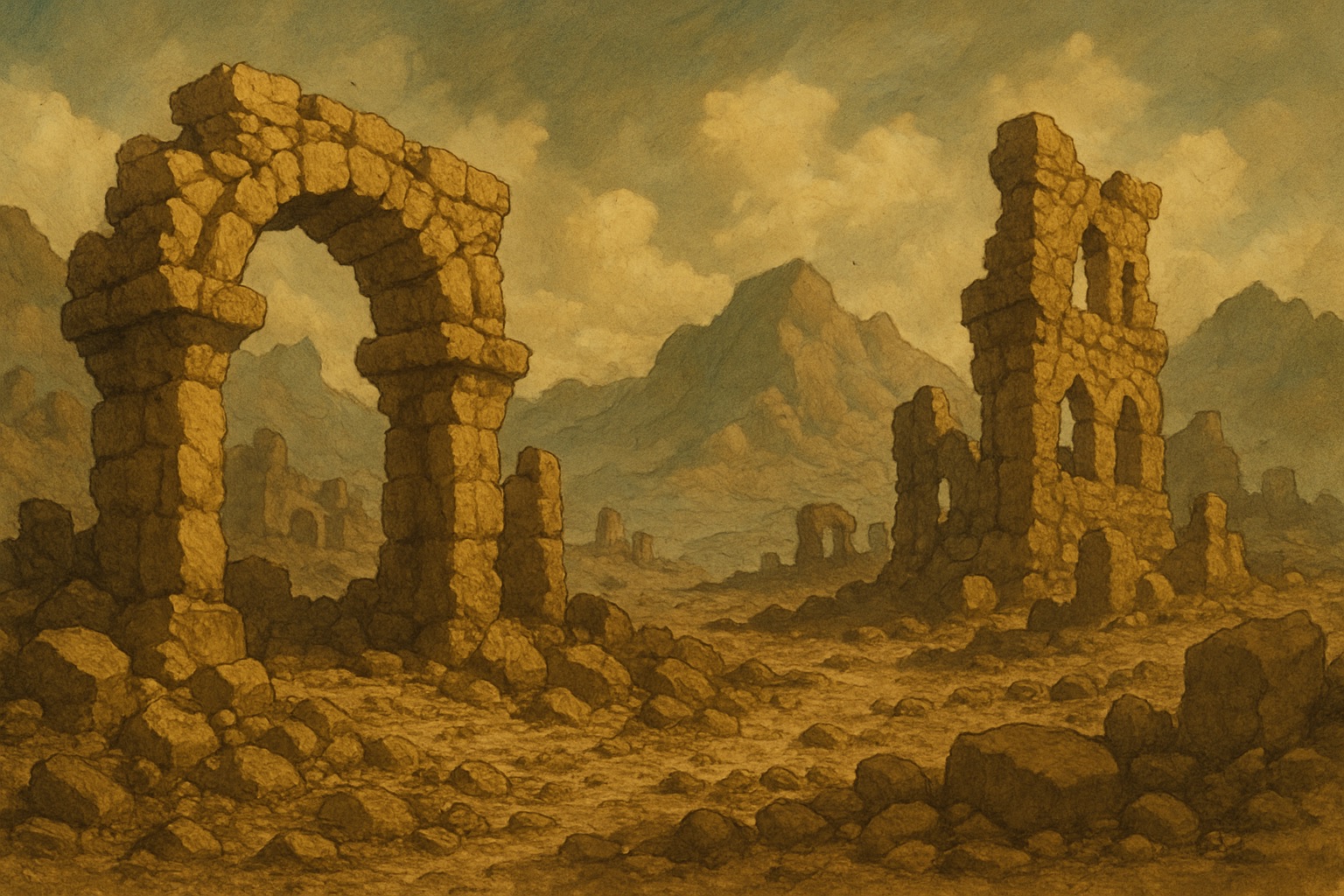 La Mer de Pierre d’Ulgar forme une immense étendue semi-aride de Co-Falca, où d’immenses ruines émergent au milieu de champs caillouteux.