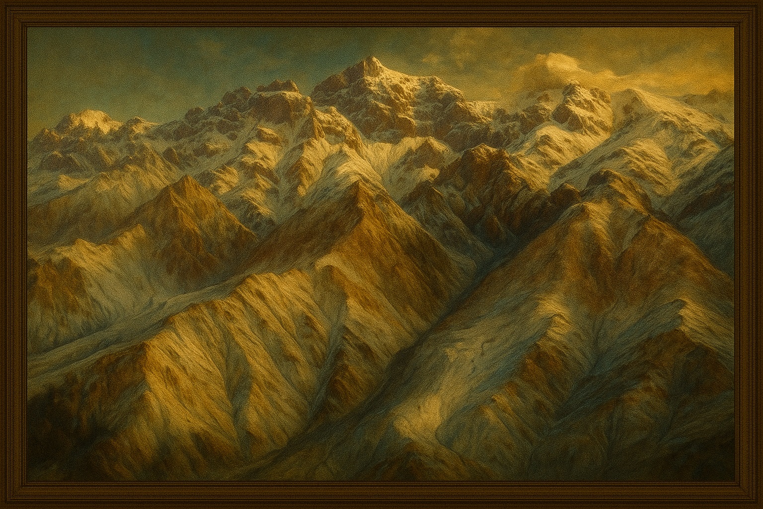 La chaîne des Kengir s’étire sur plusieurs centaines de kilomètres d’ouest en est, formant une véritable barrière naturelle entre l’intérieur d’Ut-Falca et No-Falca. Le massif est principalement constitué de schistes sombres et de granits veinés de quartz. On trouve également de nombreuses terrasses calcaires effondrées. Les versants des plus hauts sommets sont ornés de glaciers suspendus. Les versants nord sont globalement nus, exposés aux vents et à l’érosion. Les versants sud sont un peu plus verdoyants, avec des forêts de pins noirs et de cèdres tordus. On trouve également des landes rases de genévriers et fleurs d’altitude. Mais passé 2 500 m, on ne trouve que des roches nues et des terrasses balayées par le vent. Le froid est suffisant pour maintenir de grandes parois striées de coulées gelées et des lacs glaciaires. A 3 000 m, le paysage change encore. Couvertes de neige éternelle, les corniches cisaillées alternent avec les crêtes effilées, les séracs et les pics effondrés. Les plus hauts sommets abritent quelques rares dépôts de lapis cendré.Vestiges curiates