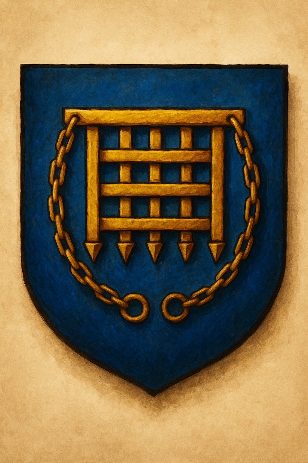 Le symbole de Nebria est une herse dorée ceinturée d’une chaîne sur fond bleu.Lois et ordre