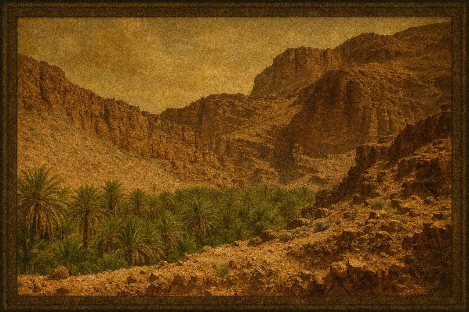 Dans l’oasis, l’air doux et humide contraste violemment avec la chaleur sèche du