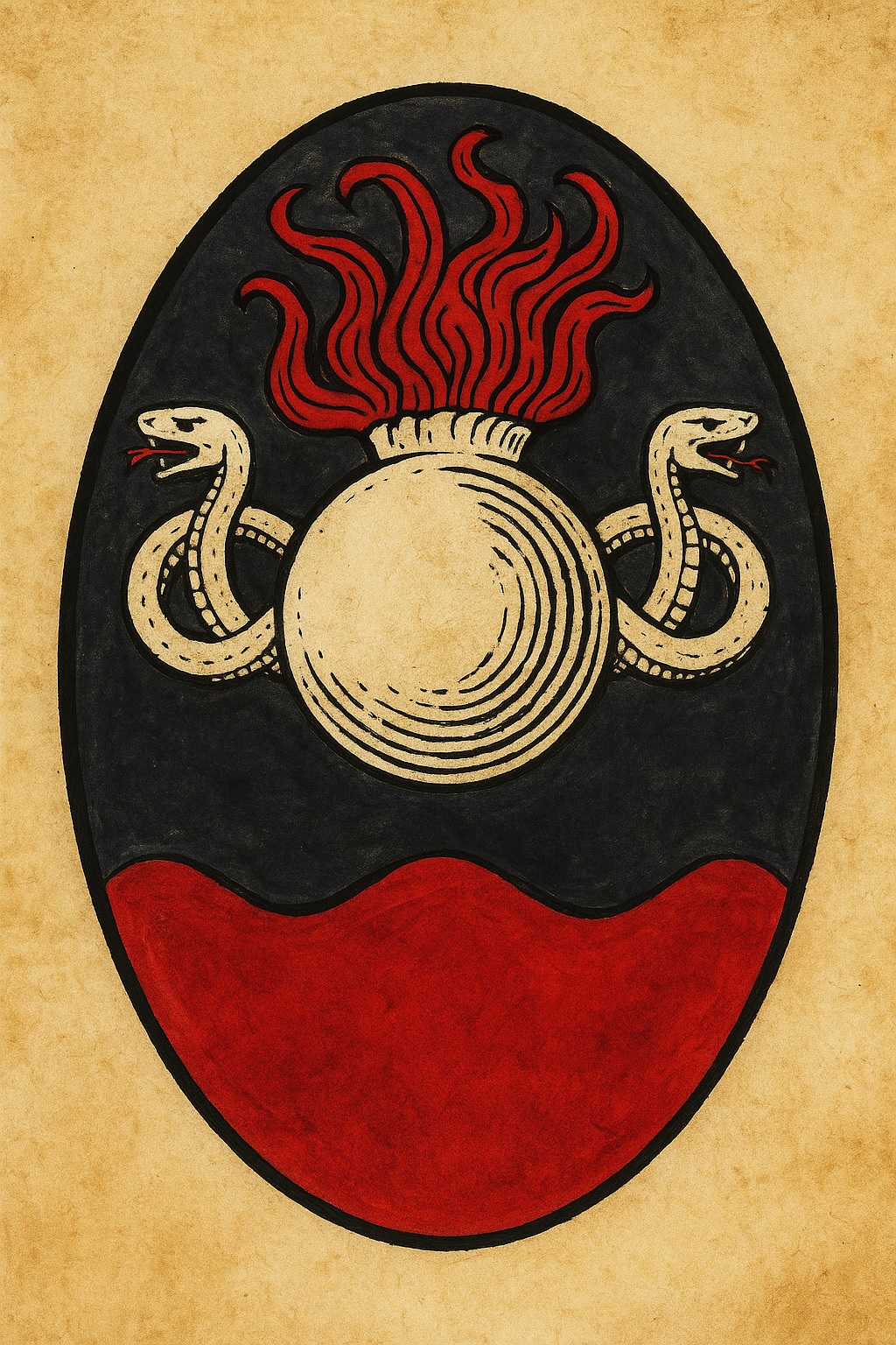 Ravnaka utilise un brasier encadré de deux serpents blancs sur fond noir pour orner ses bannières.Religion et croyances