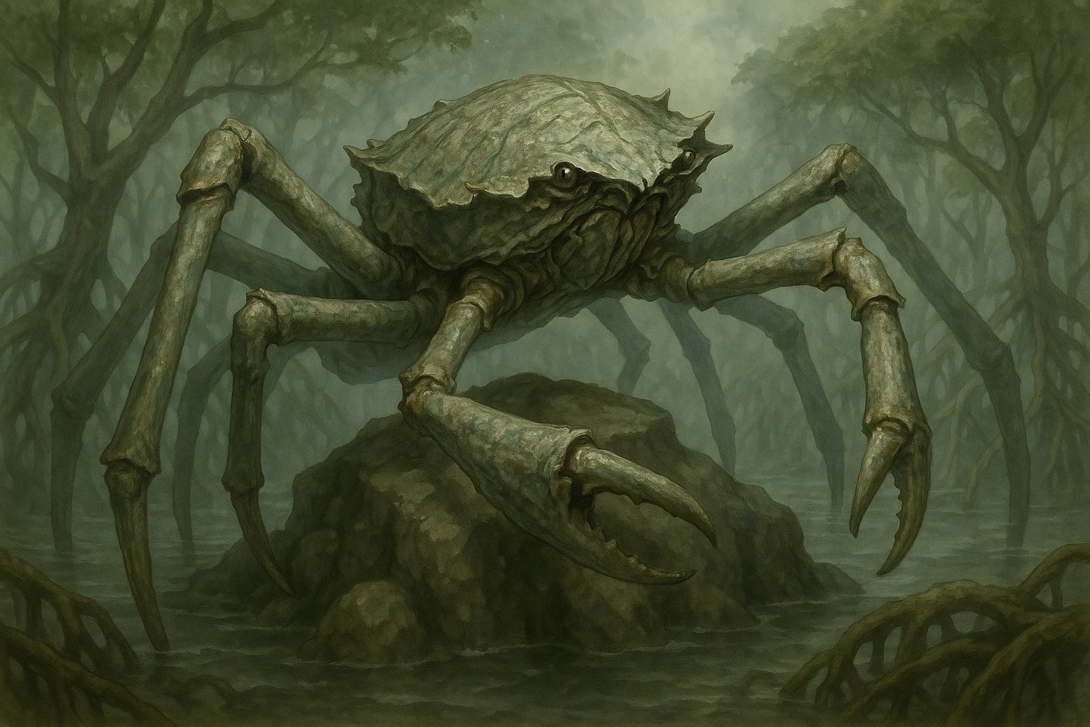 kapferis, des crabes-araignées géants. Ils occupent certaines îles et chassent dans la plus grande partie des mangroves, compliquant la tâche à de nombreux pêcheurs.