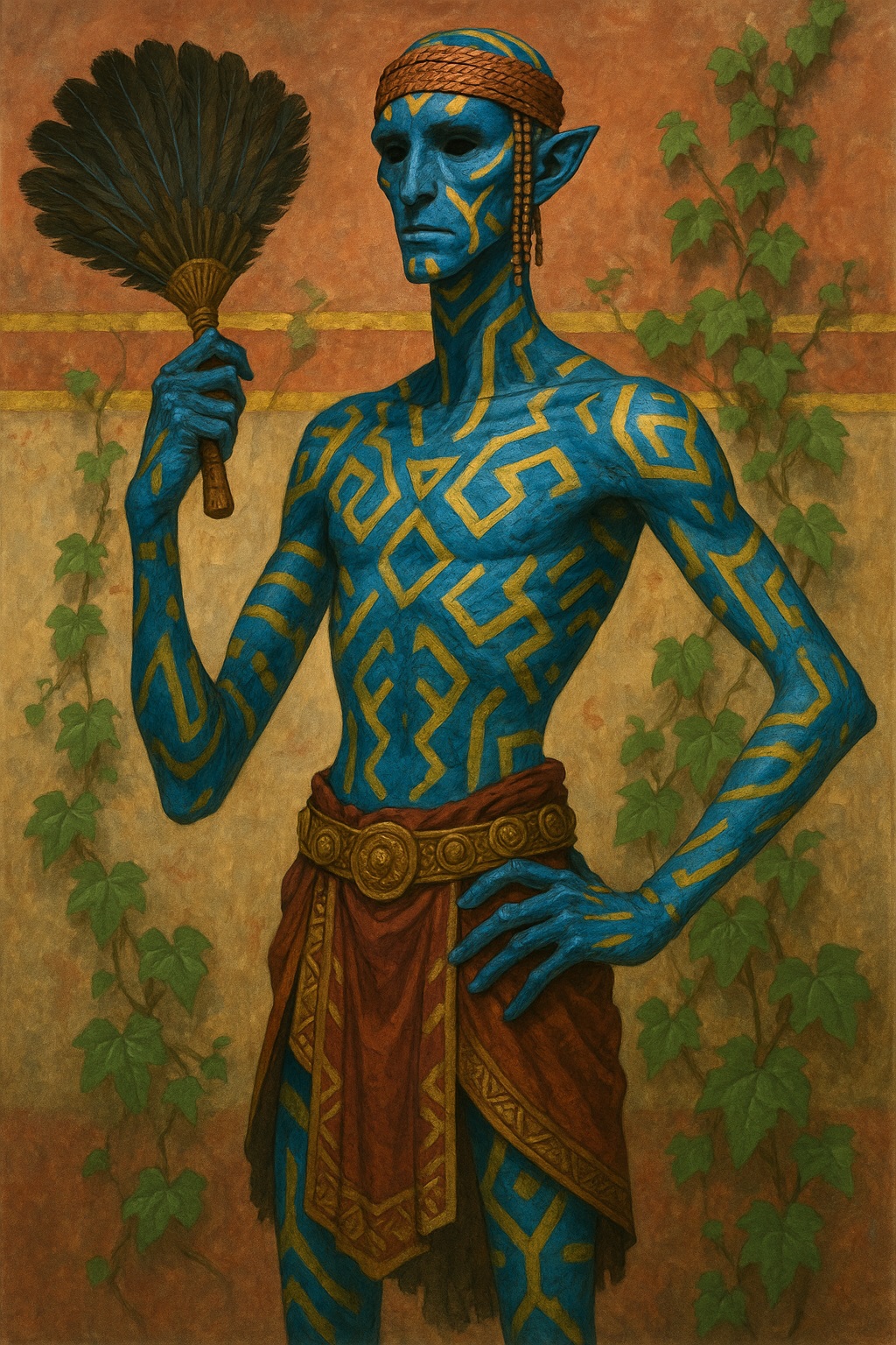 hubrime. Ceux-ci se détachent d’autant plus qu’ils ont l’habitude de se teindre intégralement la peau avec une épaisse pâte bleue, qu’ils décorent avec des motifs jaunes éclatants.