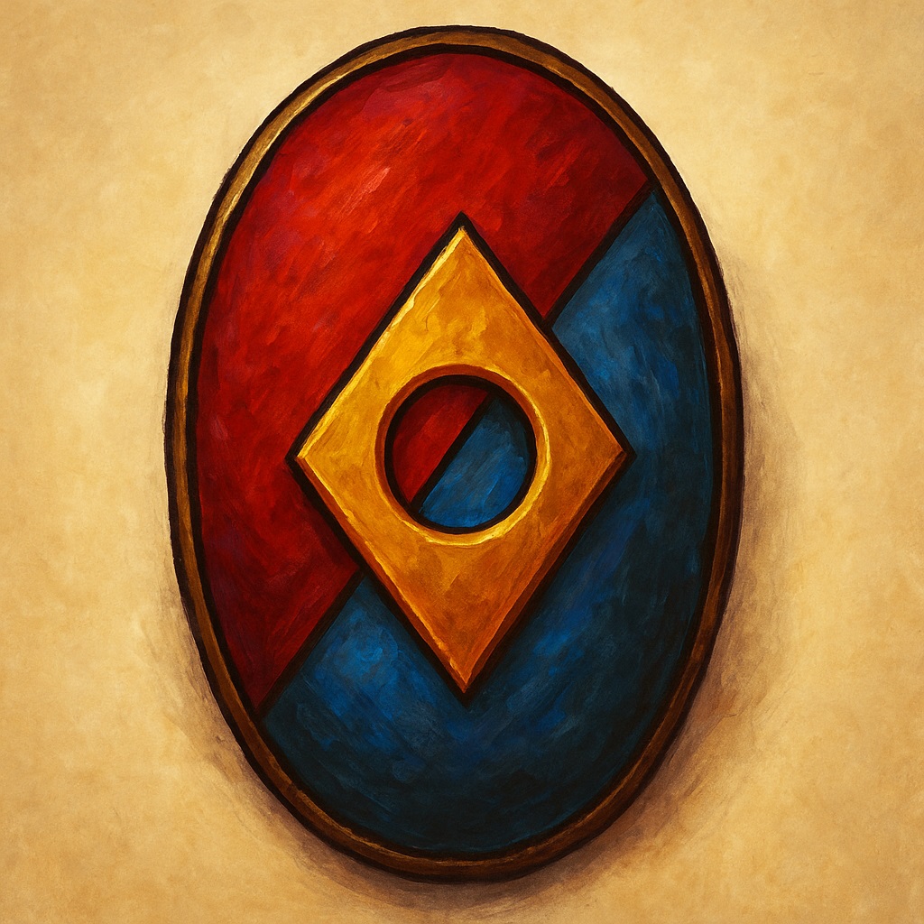 Le Sundarka orne ses bannières d’un losange doré percé d’un cercle sur fond bleu et rouge, deux teintes très appréciées dans le pays.