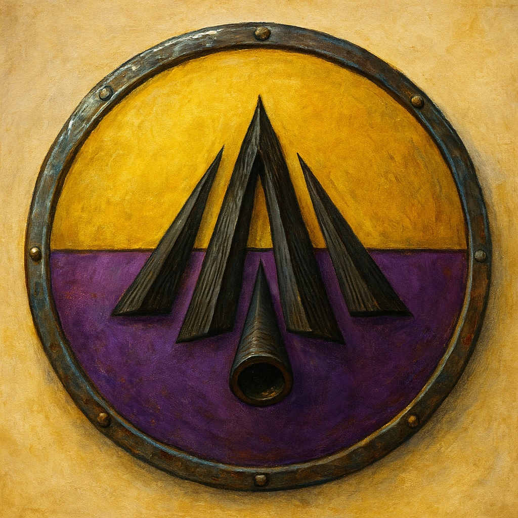 Le Targushkai a opté pour une pointe de harpon noire sur fond mauve et or pour orner ses bannières.Armées et défenses
