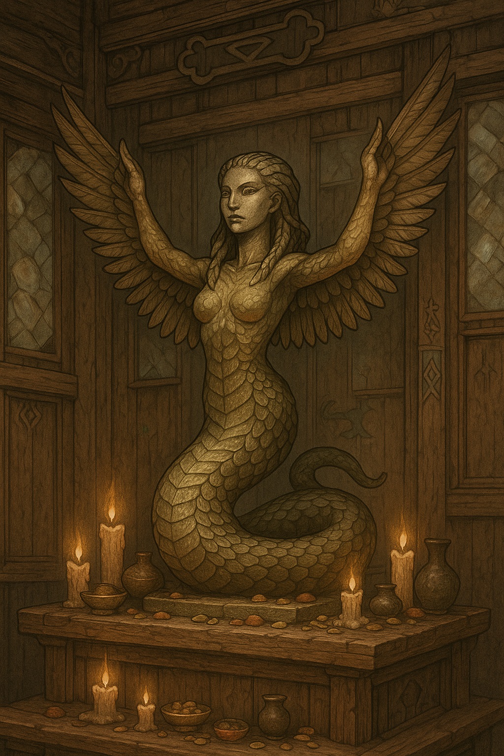 - Le Sanctuaire de la Nasse. Cet étrange temple-ponton existe depuis la fondation de la ville. Constitué d’os, de bois et de nacre, une sorte de puits s’ouvre au milieu de la pièce principale. Le sanctuaire est dédié à une déesse dont on a oublié le nom, figurée par la statue d’une femme au corps serpentin et aux bras ailés. Malgré son âge et l’absence d’entretien, l’édifice demeure étrangement en bon état. Personne n’ose réclamer la propriété des lieux, et seul le Vieux Khong y déambule quotidiennement. Quelques habitants superstitieux viennent parfois y déposer de petites offrandes.