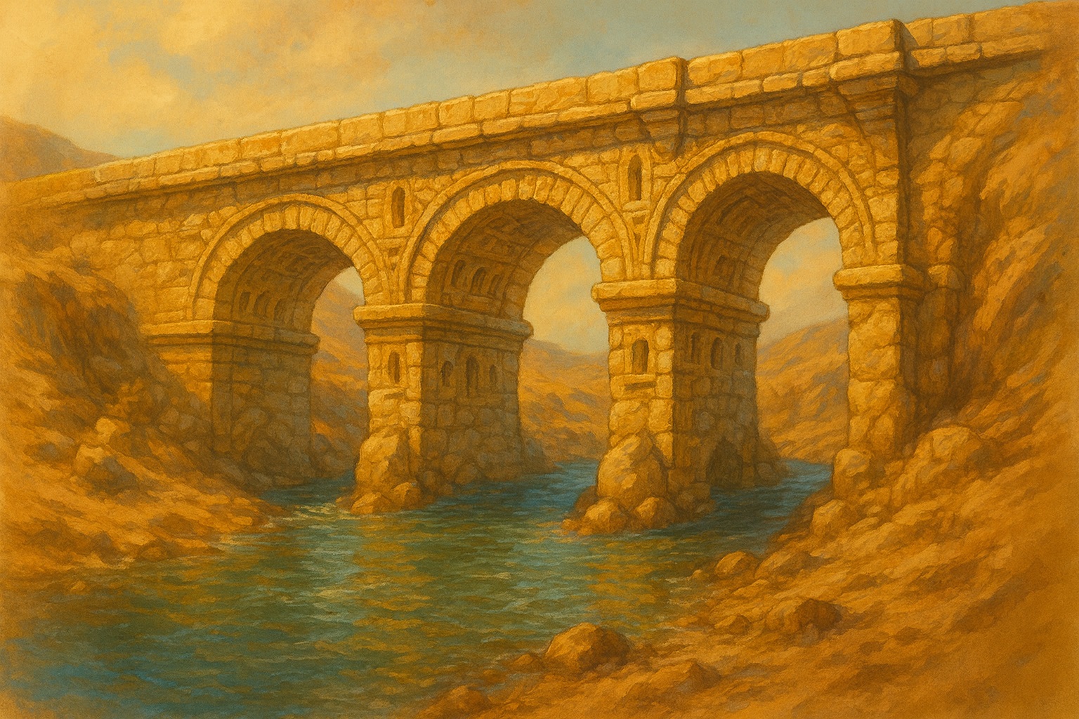 Vers le centre de la vallée se dresse un colossal pont de pierre d’origine