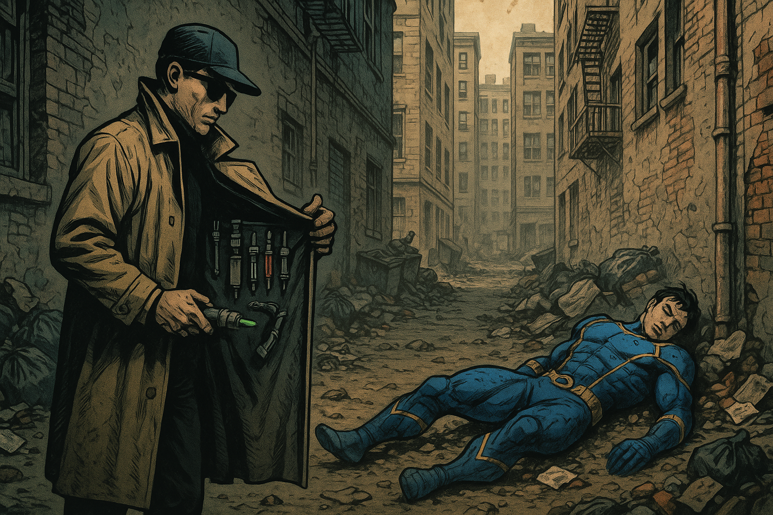 Even under the circumstances, it wasn’t long before a few hugs and crooked smiles passed between old friends meeting atop the vacant concrete garden of the high-rise. Even though this wasn’t exactly a social call, they'd all been in hiding a while now. They all looked different out of their costumes, but somehow still familiar. Switch was first to get down to brass tacks, as always. “It’s good to see you all-” he started, expression warm before hardening into that familiar 'all-business' mask. “But we’ve got a problem.” His gaze slid toward the woman in their company, giving her the floor without another word. Alias kept her smile but dropped her eyes, weighing her next words. “Hate to be the bearer of bad news, but yeah. We do.” When she looked back up, her face softened. “My Agency contact reached out. One of their experiments broke out. And... he’s after us.” Apoc crossed his arms and let out a low scoff. “Wouldn’t mind a little excitement myself. What kind of experiment?” Even without using his power, the man could put most bodybuilders to shame. Hiding was never his style. The dark-haired woman shook her head. “We can’t fight this one. Not really. They put him through some kind of new program. He’s hunting us. To, well... steal our powers.” She let her words hang in the air a moment so reality could sink in. Pushing his glasses up the bridge of his nose, the shorter man scrunched up his face in defiance. “We both know what we’ve survived before. If he bleeds, we can kill him - hell, we’ve killed things that don’t bleed; so…” He trailed off, cleared his throat. “What makes him so special?” The larger man agreed. "We should dust the old uniforms off. One last time..." Apoc teased, peeling the cap off his beer with his teeth and spitting it over the edge of the building. Alias exhaled, the tension catching in her throat. “A few already tried. Fighting him now’s like taking on a line-up of our worst enemies and best allies rolled into one. My friend risked her life warning us. We need to move. He’s been working his way up, collecting powers like weapons. We can’t win here. I’ve told everyone to regroup at the old spot in Panama. We’ll figure it out there.” No one liked the plan, but they knew she was right. Alias’s contact hadn’t risked everything for them to throw it away. This wasn’t a drill. It wasn't a headline for some public stunt. They were being hunted by a serial killer. Collecting their most intimate strengths and perverting them into weapons against the innocent. And somewhere out there, that thing was already moving toward them - the Agency’s worst secret yet. The man calling himself Harvest.