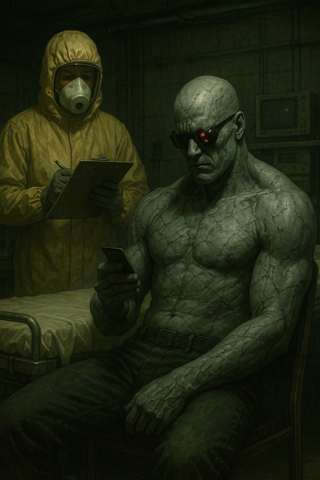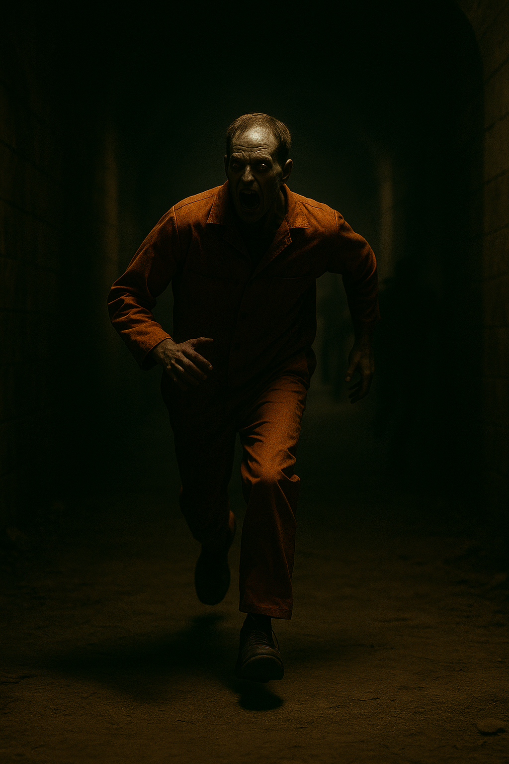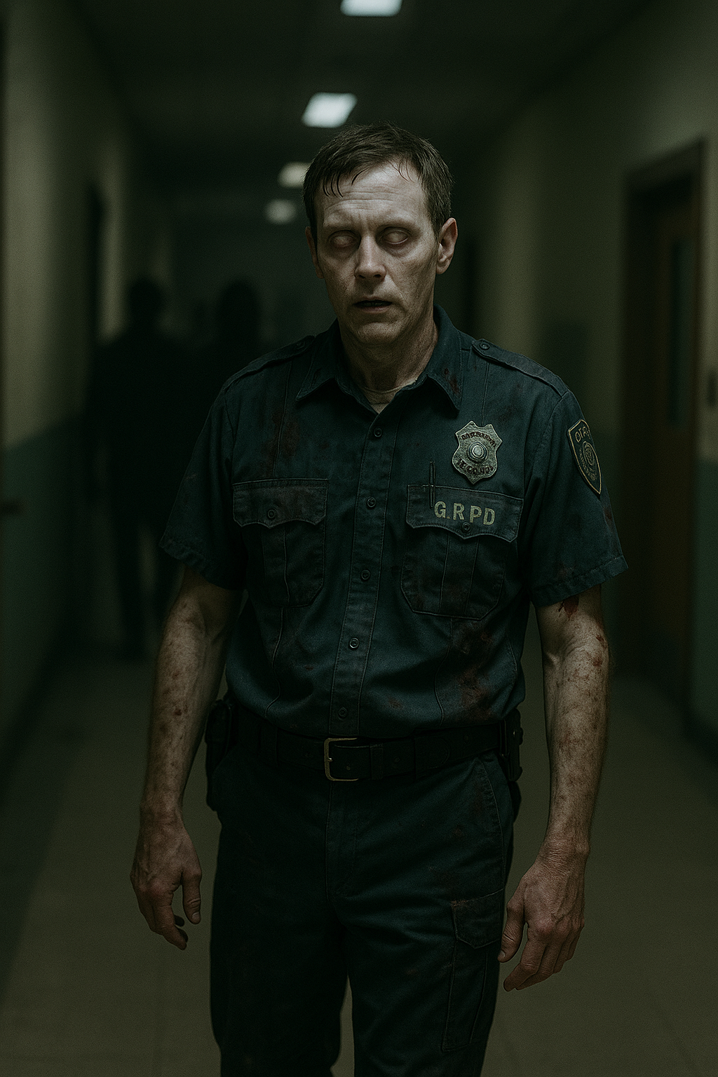 The door to the holding cells was unlocked. Just like the last two she’d passed. Agent Lydia Sixsmith let out a quiet sigh, already preparing a firm speech for the officer inside. But when she stepped into the room, the desk was empty. A cold feeling settled in her gut while Tad Ewing rambled on in his cuffs. “Listen, officer—ma’am—I’m serious! I know how it sounds, but I can prove it! Their server is right below us- they’re making you bring me here to kill me!” She waved him quiet, more annoyed than alarmed. Did he really think that line would work? She was tuning him out when another man came sprinting up the hallway. “Got my hands up, balls tucked, and I ain’t giving you no trouble! Names Goose- Dexter Goose! I told y’all that guy I shot was sick with something! My cellmate’s got it too- he’s in there eating people, man!” Lydia didn’t speak. She just cuffed him, left both men behind, and drew her weapon. Her voice echoed down the corridor. “Officer? You back there?” No answer. She rounded the corner, weapon raised—and froze. Blood pooled across the floor. A familiar body slumped against the wall, face torn open. Something hunched over him… chewing. Lydia turned on her heel and ran. “You’re both still in my custody,” she said, unlocking the cuffs. “You run, it’s just another charge. We’re going out to my car to radio for backup- got it?” But even as she spoke, a shape emerged from the far end of the hall. A silhouette. Shambling. Wet. Other prisoners screamed behind their bars. Then the sirens wailed. Emergency lights flickered red. Steel shutters slammed down over the exit. Mr. Ewing dropped into a chair by the desk, fingers dancing across the keys. “I—I might be able to fix this!” he cried out, desperate. Goose grabbed a folding chair and held it like a pro wrestler. “Don’t worry,” he grinned nervously. “I saw this on TV once.” Agent Sixsmith raised her sidearm and took a steady stance. “First and final warning. Get down on the ground and put your hands behind your head! I -will- shoot!”