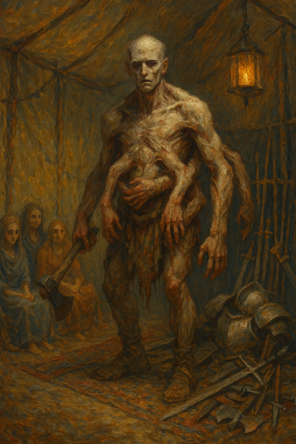 Another horrible creation of Somnic mutations run rampant on human DNA. In the Yukon Dynasty, they are revered and given special status. Sent in when momentum has stalled, their presence alone has been known to send defenders fleeing in terror. Given special access to steel forged in the capitol, they are equipped with the best armaments the clan can get it hands on or forge themselves. Despite their other primitive technologies, this steel is renowned for its uncanny strength.