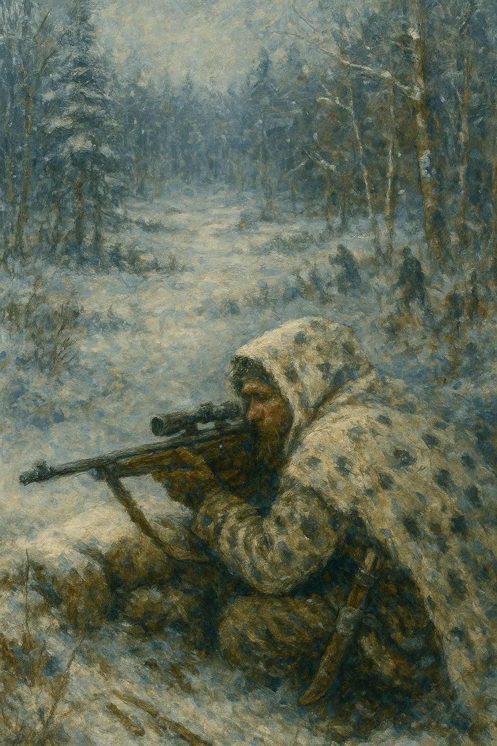 Sewing together the hides of snow hares and anything else with a natural camouflage in the winter, they are nearly invisible when sitting still. Traditionally the hunters of wild game for the clan when they are not actively fighting, they are provided with better weapons than the Berserkers. Sneaking amidst the advancing foot soldiers, they pick out targets based on merit. They often end up neglecting officers and medics, seeing them as less of a threat compared to machine gunners and grenadiers.