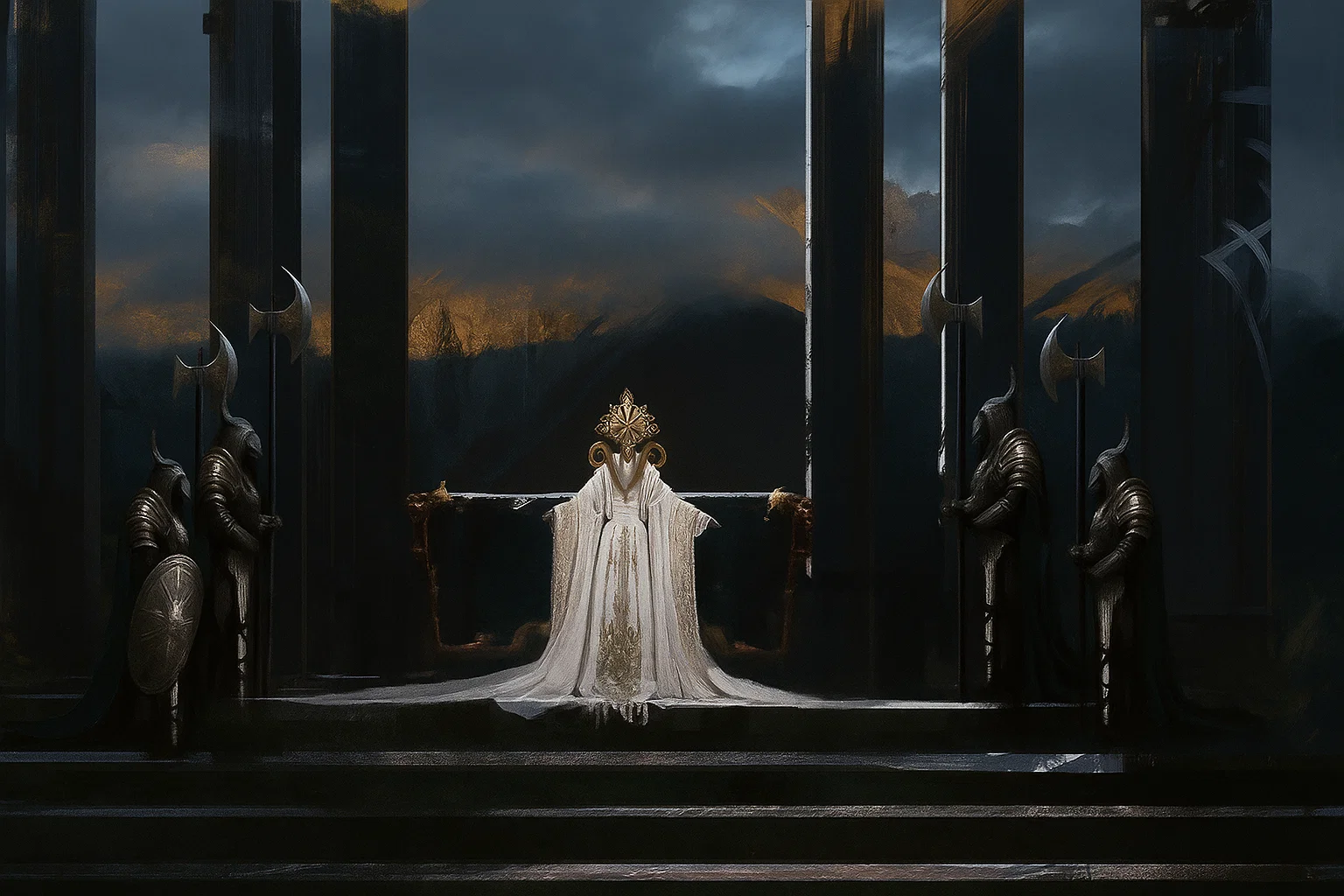 ew fairytales in Daënfel culture are as dark as that of the Cloven Queen, mistress of the night. Often attributed to a bygone Queen of the old city of Avalon, this story tells of betrayal, tragedy and scorn. The Queen ascended to the throne after her late husband's death - one of poisoning. His death is often attributed to a corrupt council, who sought to put the weak queen on the throne and seize power through her name and children. And yet it was not to be so. The queen took revenge on the Council, hunting down each man who had been involved in her husband's murder. While her revenge was swift and effective, it drew the ire of the many noble houses, each rebelling against the Queen in retaliation and fear. This escalated over many years, with the realm falling into chaos as neighbours turned on eachother. The Queen guarded her precious son, who barely saw the light of day. The queen earned her title in one of the attempts on her life. A mercenary brought down his axe upon the queen, cleaving her face in two. And yet the queen still persisted, bringing down her assailant and recovering from the wound. From that day onward, the Queen wore a mask at all times, none seeing what her visage looked like beneath since she sustained the wound. The bitter feud was ended with the death of the young prince, slain by an assassin's hands within his strictly guarded chambers. The Queen fled, and was said to be taken in by bird-like creatures of the mountains. These creatures shielded her from pursuit by the blood-hungry nobility, and the fate of the Queen is often speculated. In many versions of the tale she becomes the Queen of the avian creatures, planning her revenge on the human lands which never comes to fruition. In others she becomes a pilgrim, wandering the mountains and accosting travelers for news of her son, lost in the wind and snow.