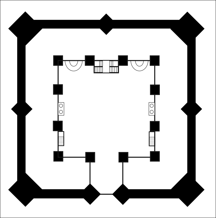 They have a grand entryway which is made up of two sets of great double doors that can be barred and braced from the inside. There are smaller doors that allow a single person to pass which can be easily secured. The Castsulae are also connected to the sewage system and could be used to enter with difficulty.