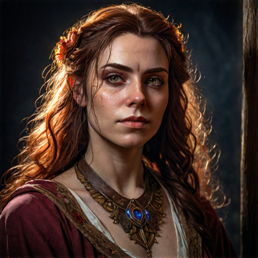 Elana is a woman of striking contrasts, her appearance reflecting both the hardships she has endured and the quiet strength that lies within her. Standing tall and sturdy, she possesses a robust frame honed by years of manual labor and resilience. Her sun-kissed skin bears the faintest traces of freckles, a testament to the countless hours she spends beneath the open sky, tending to the land and livestock of Sable's Refuge. Her hair, the color of rich chestnut, cascades in loose waves down her back contrasting the weathered lines that etch her face with the passage of time. Despite the weariness that lingers in her eyes, there is a fierce determination that burns bright within them. Her hands, roughened by years of toil and hardship, speak volumes of the sacrifices she has made in pursuit of a better life. Yet, despite the calluses that mar their surface, they possess a gentle touch that belies her strength, capable of both tender care and unwavering resolve. In every line and crease of her weathered face, in every callouse on her hands, and in every weary step, there lies a story of resilience —a testament to the power of the human spirit to endure, to overcome, and to thrive against all odds.Background