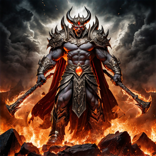 The first and strongest of the divines, formed from Nithe's malice, took the form of a great cataclysm. He used his powers to turn the mountains into volcanoes, the sea into typhoons, and the sky into tornadoes. He shoock the earth and flooded the land bringing about destruction and death never before seen by the mortal races before his arrival. He seeks to spread chaos, destruction, and death to every corner of the world until nothing is left but dust.