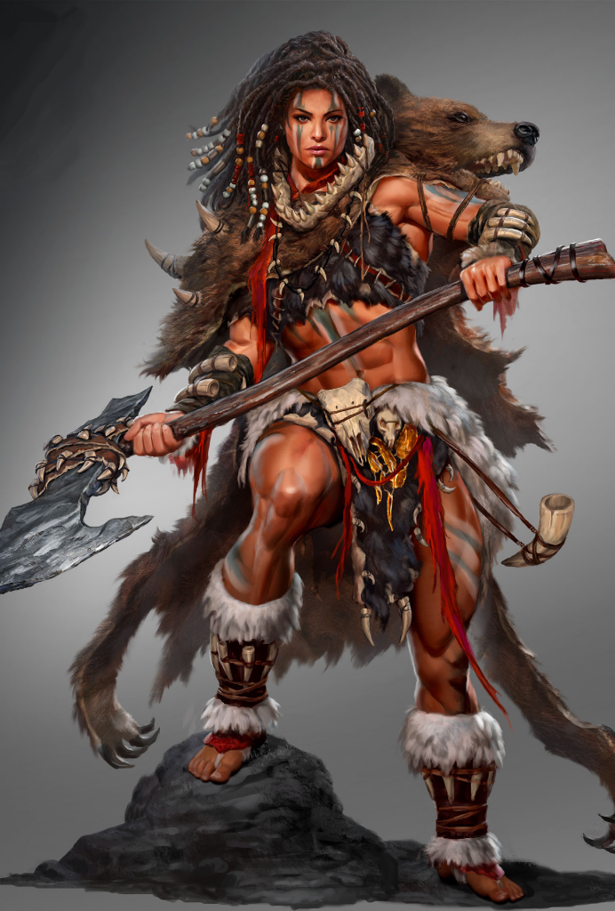 Born into the Ridgeborn Tribe, Sandra was expected to conform to the traditions of her people, where leadership was reserved solely for men. From a young age, however, she defied expectations, proving herself stronger and fiercer than any of the men in her tribe. She earned the nickname "Bearclaw" for her ferocity in battle, her fighting style reminiscent of the great bears that roamed the Stormpeak Mountains. Despite her prowess, her tribe's elders grew fearful of her growing influence, worrying that she might one day challenge their authority.Quirks