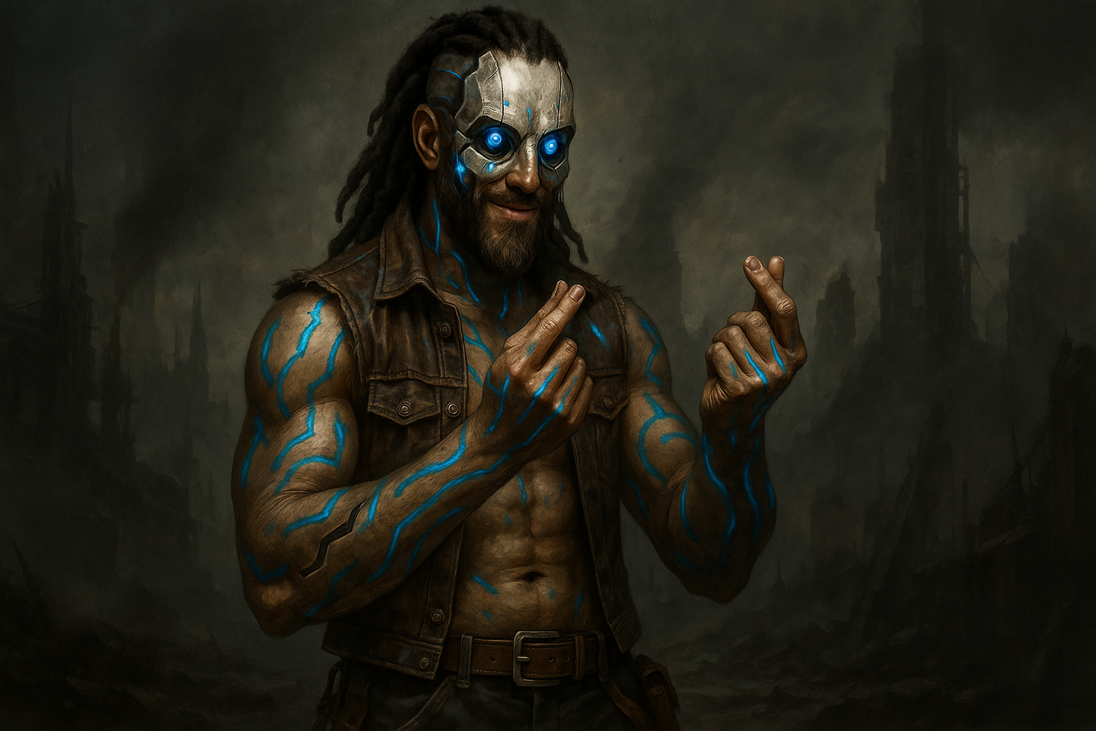 Ephrem Stillwave came into the world beneath the broken towers, scavenger enclave pressed close to the ruins of Schenectady. The Reverent Static had not yet found its shape. Even as a child, Ephrem moved differently. While others chased each other through rusted corridors, he slipped away, drawn to the places where wind stilled, and the ground hummed with the memory of old machines. He would stand, silent, in shallow concrete hollows, listening. His family whispered that he heard storms before the metal wind did. They were right. Ephrem always felt the static coming, hours before its bite found anyone else.