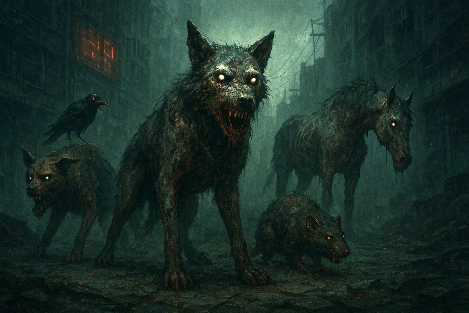 Survivors often tell stories of infected animals as omens or curses—black-eyed wolves in the treeline, carrion birds that never scatter, or skeletal horses that run tirelessly until they collapse. In Camp Hope and similar settlements, the phrase “the forest walks at night” is sometimes used to describe the eerie, unnatural sounds of infected wildlife moving together in the dark.