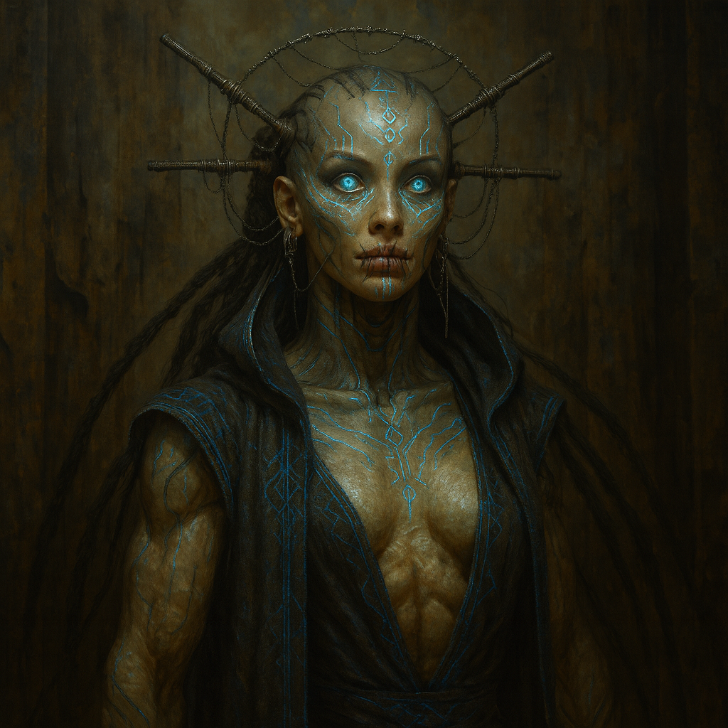 Their silence is not symbolic: years ago, in an act of devotion that set the physical standard for their entire sect, Lira cut their own vocal cords. Now physically mute, they speak only in slow, deliberate gestures and long, unbroken eye contact. Their presence feels like stepping into a library that is also watching you: calm, soft, and quietly intimidating. Even their pauses feel intentional, as though they are forever listening to voices just beyond the edge of perception.