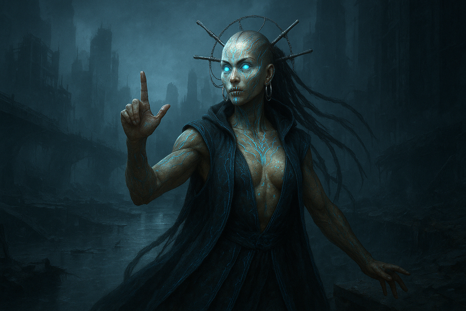 Lira grew up listening to the wasteland hum. While other children ran through dust storms or hunted for scrap, Lira sat for hours with their ear pressed to battered receiver housings, following the rise and fall of static storms as if they were lullabies. Patterns lived in that noise: fluttering, shifting, repeating in ways no one else seemed to notice. It was during one of those storms that a passing Stillwalker saw them tilt their head moments before a massive signal fluctuation rolled across the wastes. At thirteen, Lira was invited to join the Reverent Static, and they accepted without hesitation, already sensing a life they had been tuning themselves toward since birth.