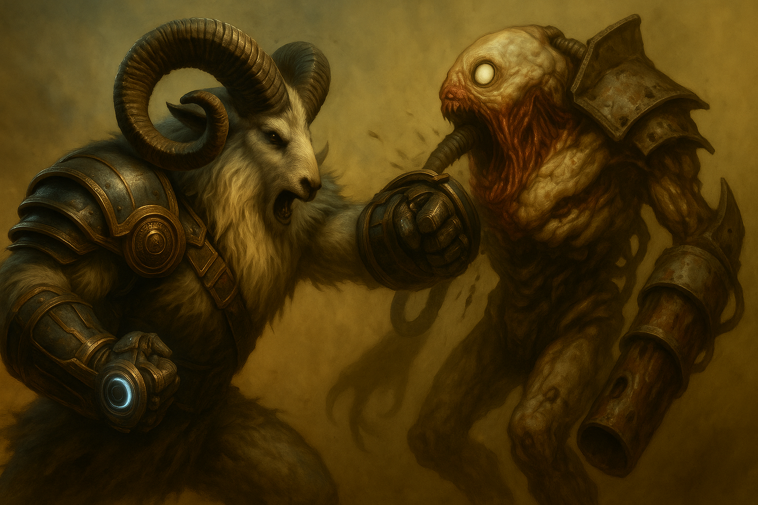 The party continues to explore the ominous, mold-infested hospital filled with hostile creatures and mysterious technological artifacts. Liam opens a door and the group faces combat against mechanical and fleshy abominations. They are small and quicker then expected. One of them punches Liam in the thigh and a drill like mechanism shoots out of its arm, taking a chunk out of Liam's leg.
