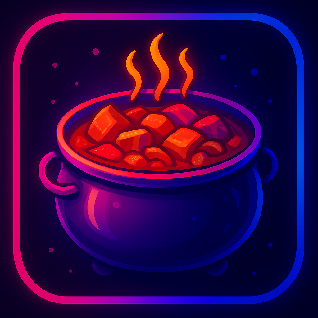 Goulash is a hearty stew made with various cuts of meat, onions, and paprika, simmered slowly in a cauldron over low heat.