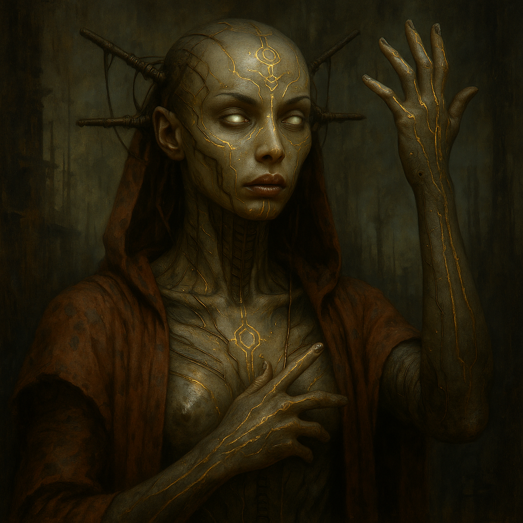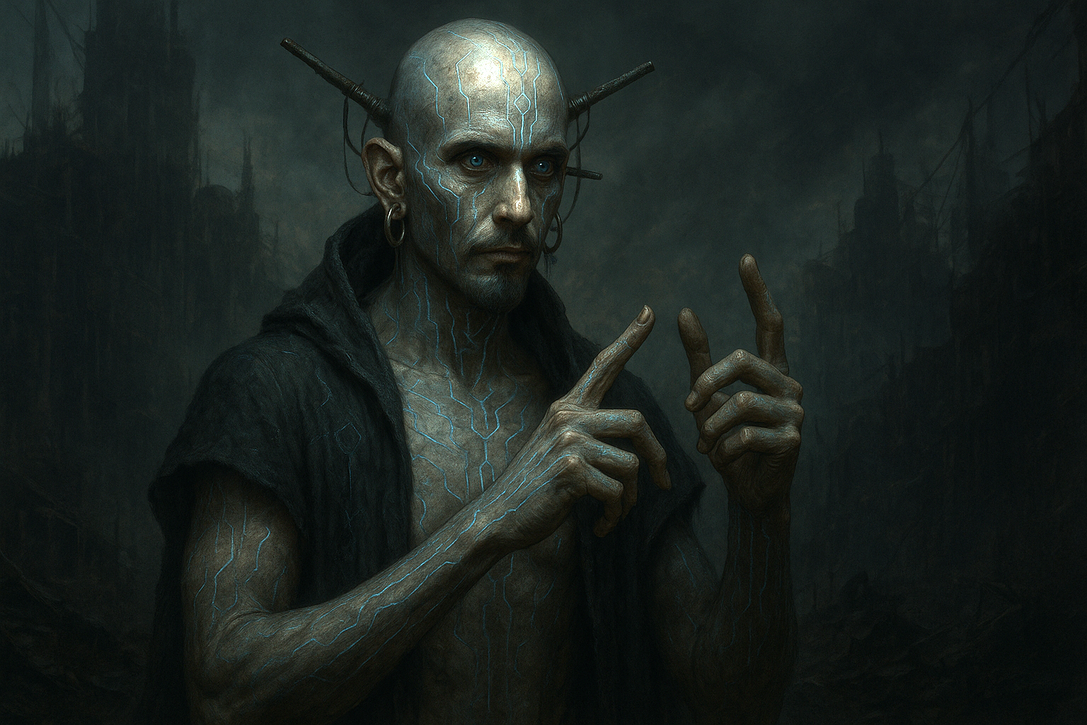 Static Sign waits in the hush, the quiet root beneath The Reverent Static. It is a language born from stillness, shaped by years spent watching what others missed. At first glance, it might echo the familiar forms of sign, but the hands move in sharp lines and corners, each motion measured and exact. There is a rhythm here, a pulse that runs beneath the skin, guiding the hands through patterns that hold more than one meaning at once. Direction, speed, the shape of the fingers, even the empty air between gestures; all of it speaks. No words, no sound. Only the silent conversation of hands, each movement pressed with intent. When written, the signs stack on top of one another, forming shapes that look more like blueprints than letters. Nothing wasted. No sound, no excess. Only what must be said, carried in the careful dance of fingers and the spaces they leave behind.