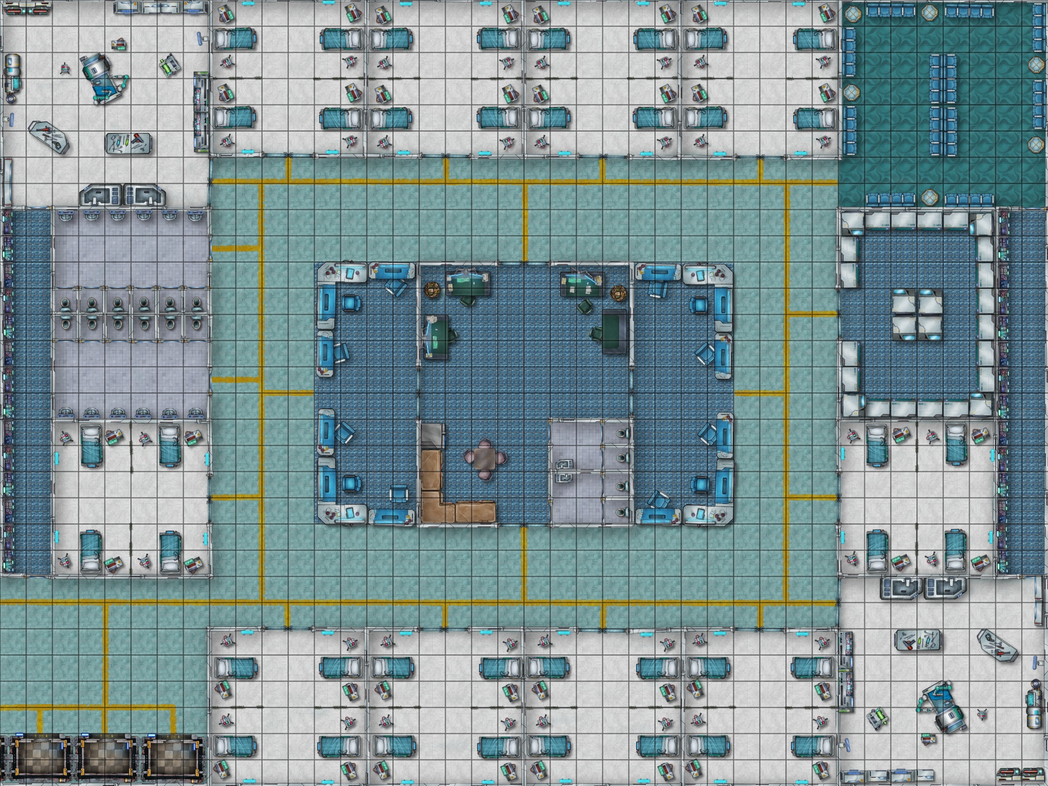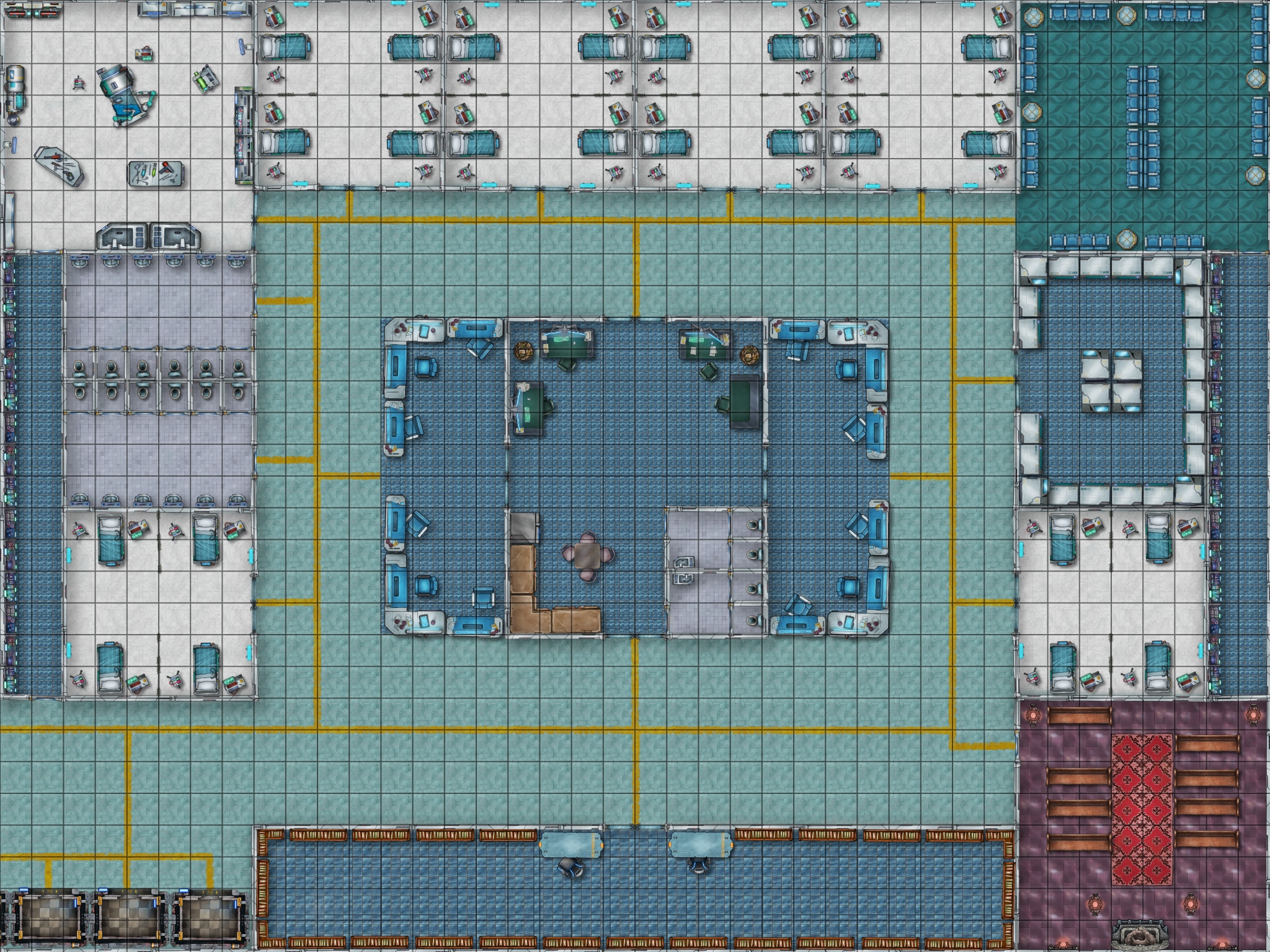 Note: There are 2 Dog Bots* in this area that the party will have to defeat before they will be able to scavenge the area. I've placed these in the upper right hand corner. A fight will trigger if the party makes too much noise or if they come into the line of sight of the Dog Bots.