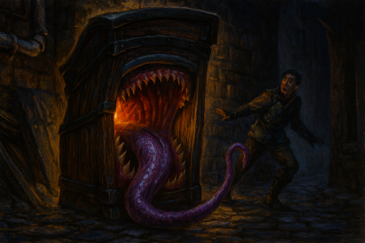 Some cults claim mimics are mouths of the Depths itself, each bite a fragment of the god’s endless hunger. They are treated as sacred traps: offerings left in mimic-maws are considered accepted prayers. The largest stories speak of whole shrines that are mimics, swallowing worshippers whole in ecstatic devotion.