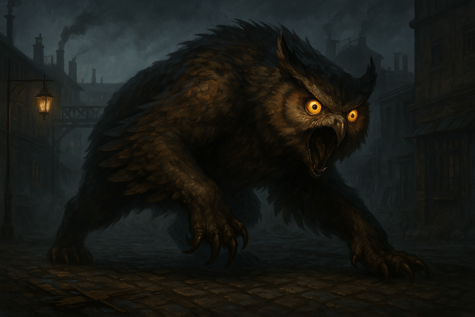 The primeval owlbear is the fury of nature and industry entangled—beast, storm, and hunger made one. In Grizburg, it is not myth but inevitability: the scream in the fog, the shadow in the forge-light, the thunder that tears the city’s bones apart.