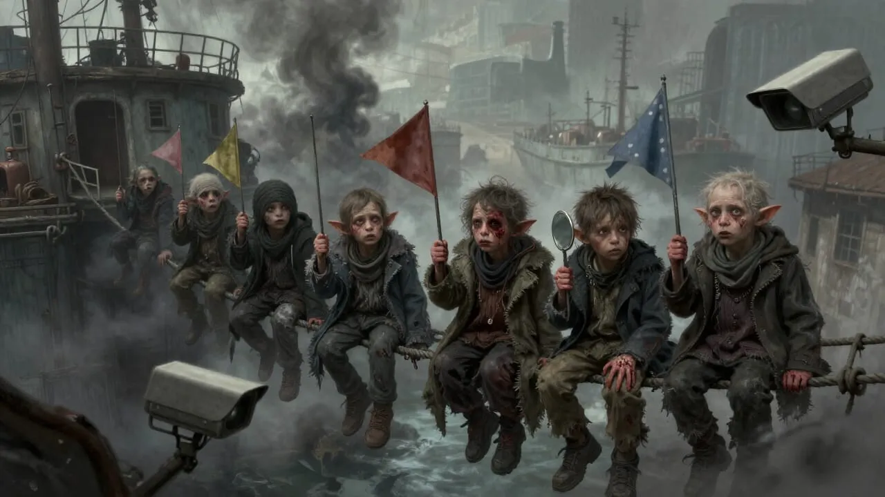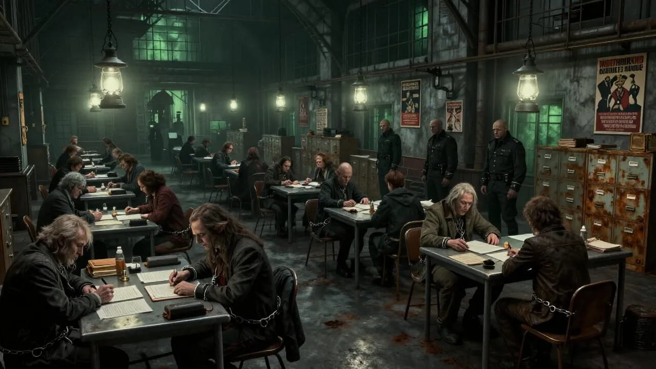 What transpired during Sherman's absence would become whispered legend among Dreadmil's workforce, a cautionary tale of what befell those who wandered Grizburg's streets without proper documentation or the protection of established powers. The Goliath's reckless exploration of the city's forbidden quarters had drawn the attention of ICE—the Department of Intimidation, Cruelty, and Expulsion—whose agents prowled the districts seeking precisely the sort of undocumented outlander that Sherman represented. A ten-foot Goliath with undead puppets for hands and the social graces of a war-hammer made for easy prey.