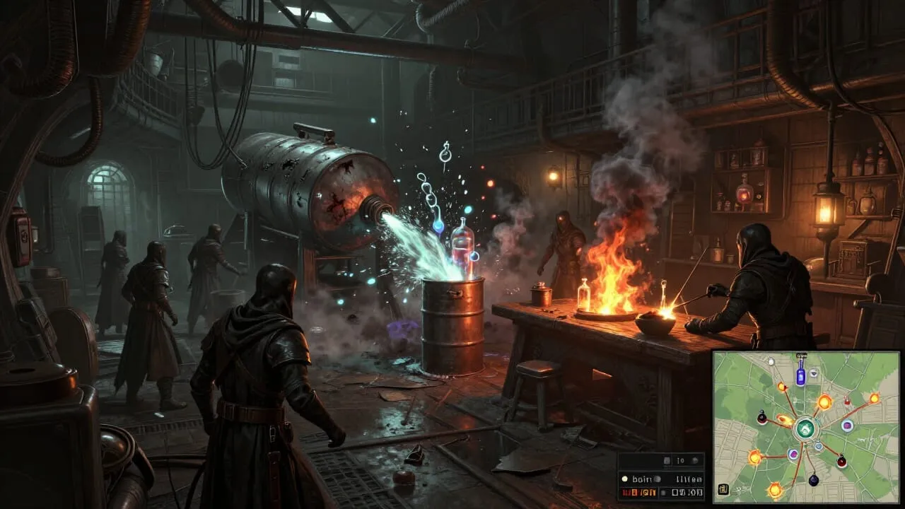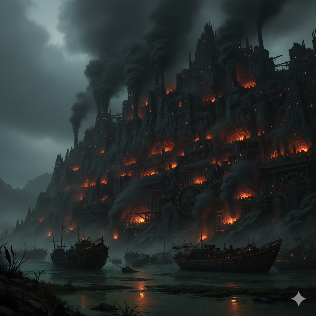 Six days had crawled through Grizburg's poisoned hours since the adventurers first stood before Slazgar Two-Eyes in his forge-cathedral of blackened iron. Six days in which the city had begun its work upon them—testing, measuring, reshaping those who would dare serve its most dangerous master. The intervening time had scattered the party like bones cast for divination, each member drawn along separate paths that wound through the industrial labyrinth toward purposes both known and hidden.