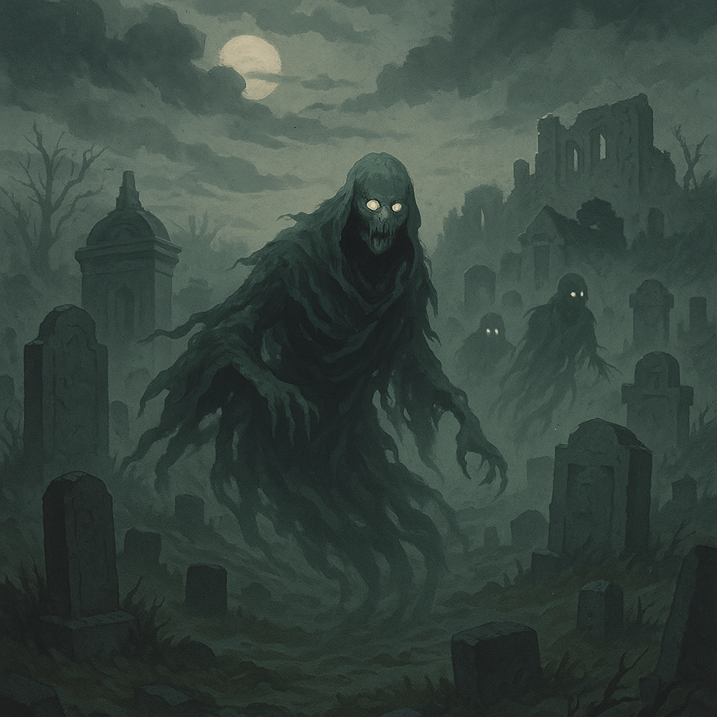 Grave-Lantern Wraith, which hovers at crossroads, luring travelers into alleys where none return.