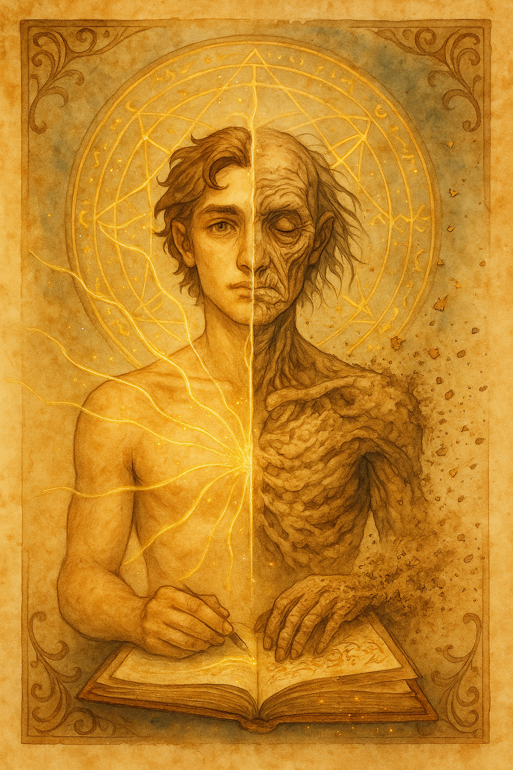 Ein Altersfluch ist eine hochgradig verbotene Transmutations- und Lebensbindungs- Magie, die:, die den natürlichen Lebensfaden einer Person rasant beschleunigt. Die Verfluchte altert in Schüben, während ihre Lebensenergie in eine metaphysische „Wunde“ abfließt, die nur durch ein vollständiges Opfer geschlossen werden kann.