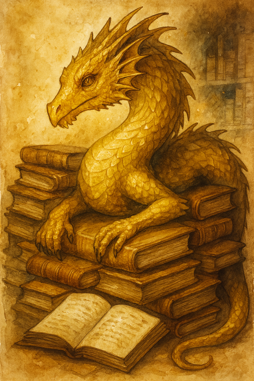 Wie sein voller Name Aurelius Chronarius Wyrm bereits andeutet, ist er ein Goldener Bücherwyrm, der:, ein drakonidisches Wesen uralter Herkunft, das zur Gestaltwandlung fähig ist. Seine wahre Form—selten gezeigt—ist die eines gewaltigen, tinten- und goldschimmernden Wyrms, der sich durch Regale winden kann, ohne ein einziges Buch zu berühren. Es heißt, jedes Werk, das er jemals verschlungen oder gelesen hat, brennt als klares Lichtmuster in seinen Schuppen fort.