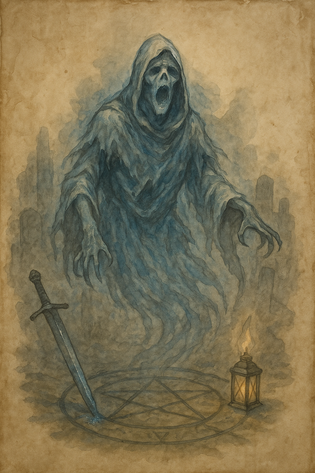 Wesen & Bindung Erscheinungen verfolgen Ziele. Manchmal kennen sie ihren Zweck nicht bewusst, doch sie treiben ihn gnadenlos voran, ohne Rücksicht auf Lebende. Meist sind sie an Ort oder Relikte ihres Todes gebunden – ein Haus, ein Schlachtfeld, eine Krypta – und können sich sogar zu Schwärmen verdichten, die als „Schlachtnebel“ ganze Areale heimsuchen. Sie erscheinen nicht nur nachts; Licht kümmert sie wenig, und Versuche, mit ihnen zu verhandeln, gelten als unzuverlässig bis nutzlos.