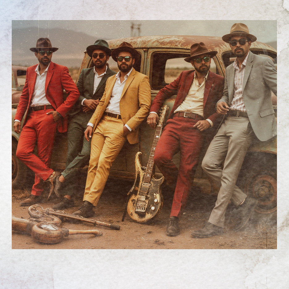 The Ricky Ricardos have a reputation for being the best-dressed scrapper gang in the Boomlands. While the presumably wear less stylish work clothes when they're digging through junk heaps for scrap, the crew boils up big time before they make an appearance at a diner or camp, trading their coveralls for loud, colorful suits, slicked-back hair, and fedoras perched at just the perfect rakish angle. Based out of a junkyard near Casper, Wyoming, the Rickies have built a reputation as the Boomlanders best source for hard-to-find auto parts. In between sourcing the unexplored corners of the Boomlands for parts, the Rickies play Latin-flavored rock, jazz, and dance music at gigs and camps along their route.