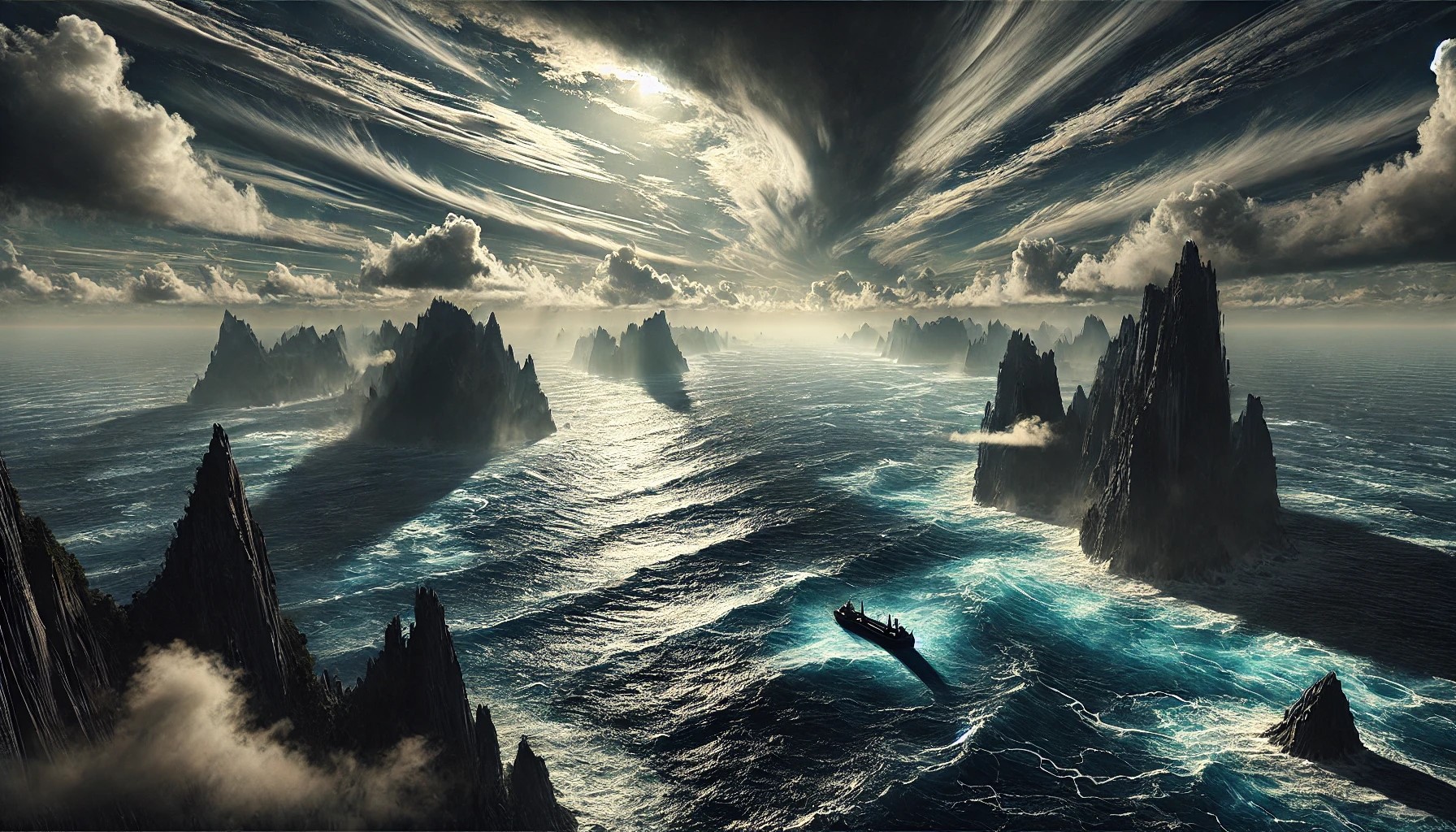 "The Ko Mora Sea is alive. It breathes with the tides, it speaks in the storms, and it feeds on the reckless."The Ko Mora Sea is a realm of peril and intrigue, its warm waters hiding treacherous currents, mysterious phenomena, and ancient secrets. Nestled south of the Nation Of Veladare, this vital waterway links the Vastus Ocean to the west and the Ples Mora Sea to the east. Its rugged geography, dominated by the jagged Ko Salas Islands and sprawling submerged boulder fields, creates a natural labyrinth where even seasoned sailors tread carefully. This sea is as vibrant as it is deadly, teeming with marine life and mythical dangers. From the huge Black Surf Sharks that patrol its depths to the legendary Rapu Rak, a colossal crab said to ambush unwary ships, its waters are alive with threats. Adding to its hazards are unique natural phenomena like the eerie Phantom Fog, the ominous Blackwater Currents, the breathtaking yet foreboding Shimmering Skies, and rare Harmonic Tsunamis, each woven into the sea’s lore and feared by sailors. Once a haven for notorious pirate fleets, the Ko Mora Sea remains a hotbed of piracy and lawlessness despite the relentless campaigns of Veladare’s formidable Black Shark Navy. Yet, its mysteries draw more than outlaws, adventurers, scholars, and treasure hunters flock to these waters, lured by tales of sunken civilizations, ancient ruins, and treasures guarded by mythical creatures. To sail the Ko Mora Sea is to embrace the unknown, where every wave carries the whisper of legend and every shadow hides potential doom. It is a place where bravery, cunning, and a touch of luck are the keys to survival, and perhaps to unearthing its greatest secrets.