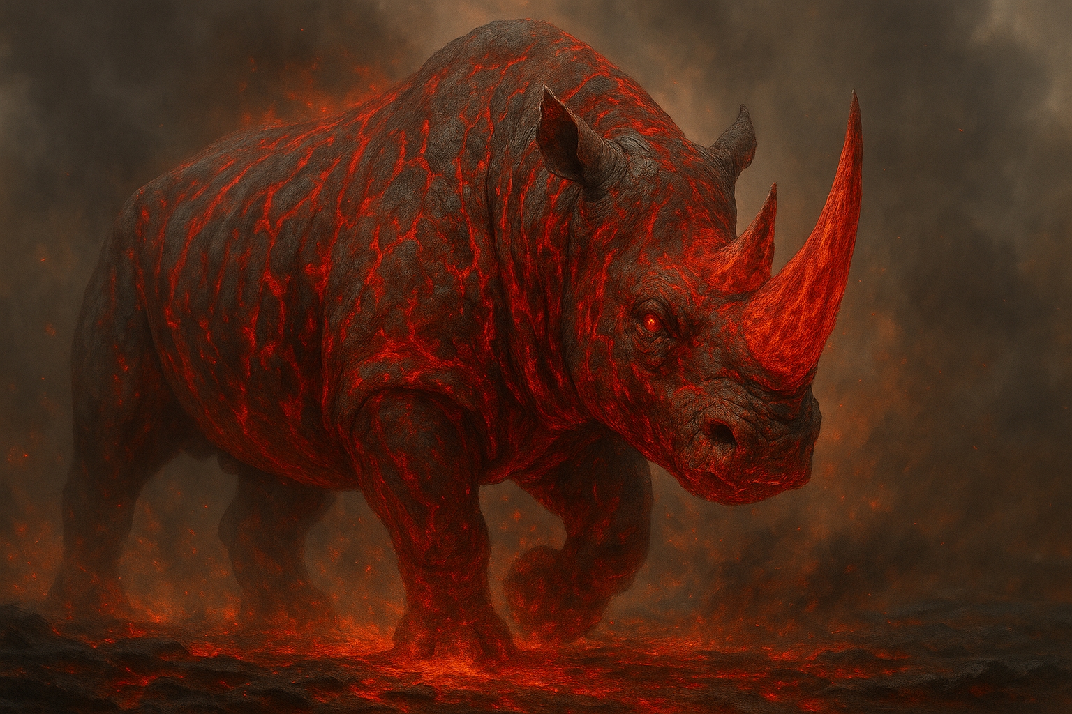This form is rare and is often associated with vengeance, prophecy, or the destruction of great civilizations. It is said that when the Bloodfire Rhinoceros stamps its feet, the ground splits and lava bursts forth, reshaping the land itself. Legends claim that only the most fearless warriors have ever dared to stand before Vulca in this form, and none have survived.