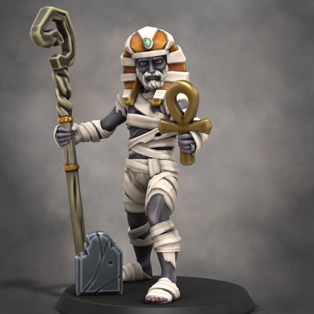 Osiris's clerics are highly respected leaders of the common folk, focusing on the welfare and eternal reward of individuals. They often share Grand Temple complexes with Isis and Anubis. Osiris's appearance as a mummified man wearing the crown of the dead symbolizes his unique mastery over both death and resurrection.Osiris shares a Grand Temple with Isis and Anubis, though the Temple Propers for Anubis and Osiris/Isis are separate. Within the proper of Osiris and Isis, each deity has a separate inner court. Auxiliary temples are found everywhere the Pharaonic pantheon is revered. Osiris's clerics play a role in the funeral ritual along with the clerics of Anubis.